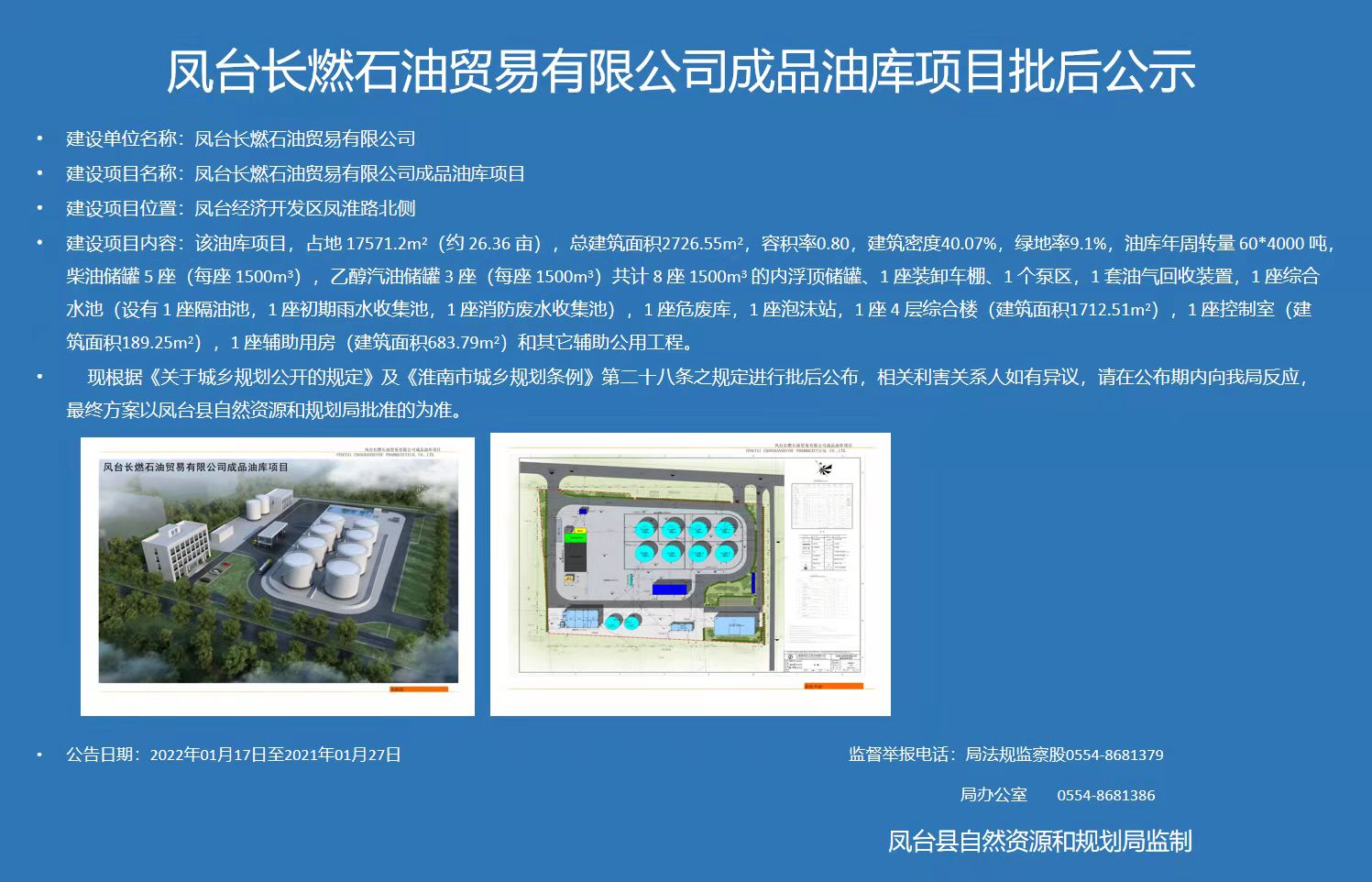 凤台长燃石油贸易有限公司成品油库项目批后公示
