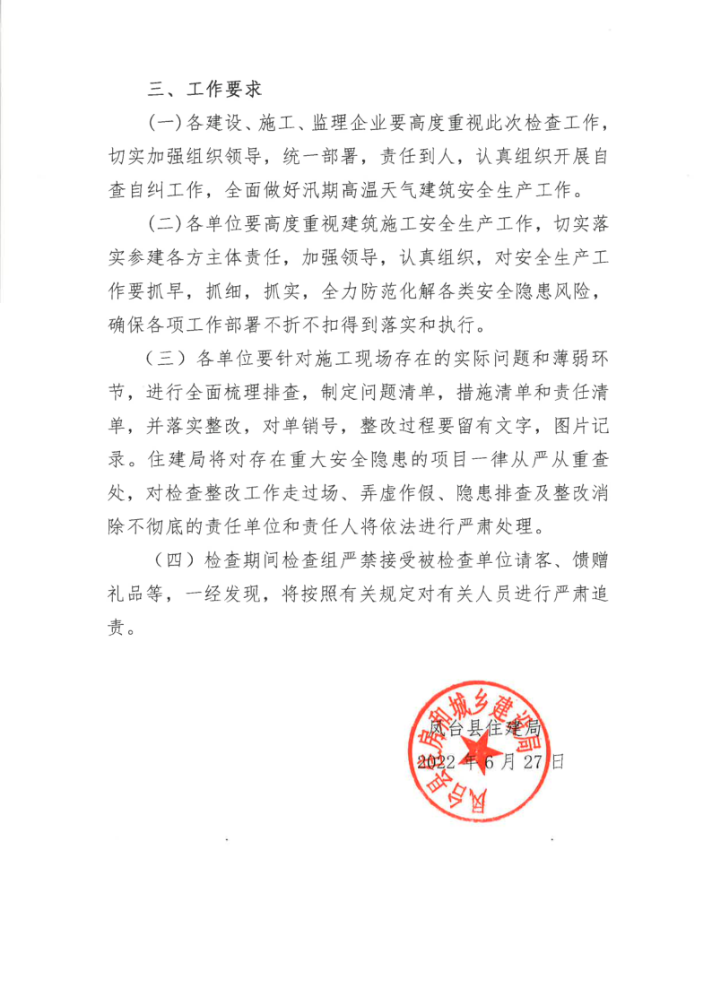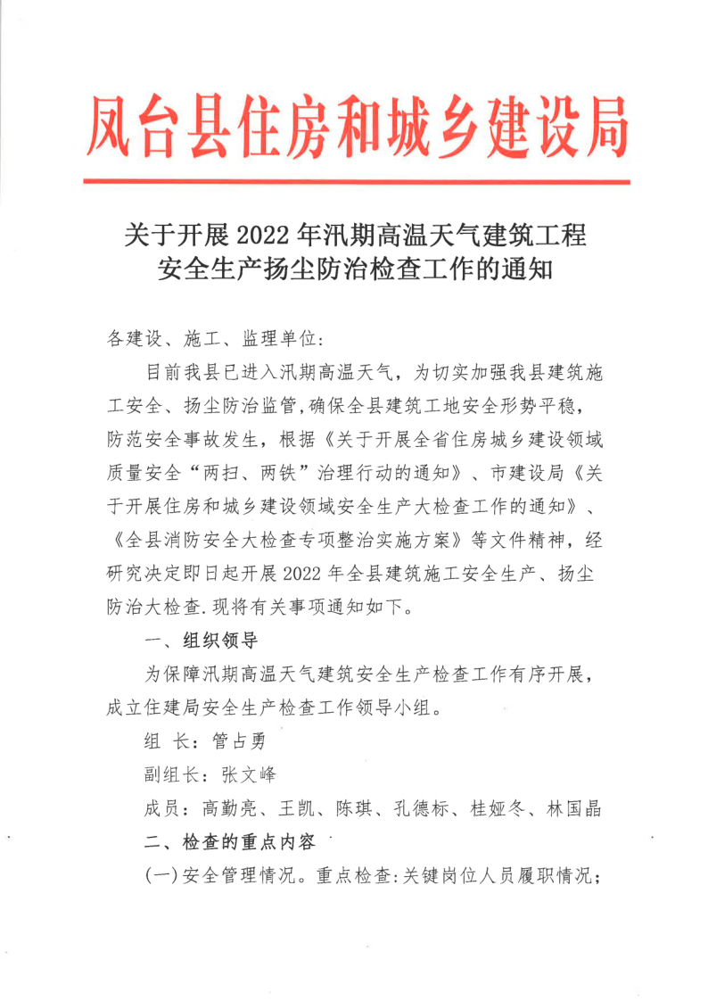 关于开展2022年汛期高温天气建筑工程安全生产扬尘防治检查工作的通知