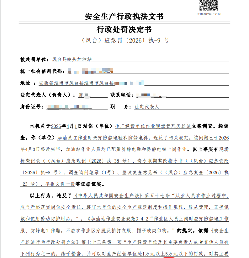 行政处罚决定书(凤台)应急罚〔2026〕执-9号