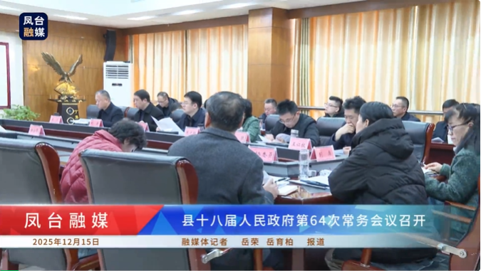 12月15日,凤台县十八届人民政府第64次常务会议在县政府会议室召开。县长李大庆主持会议并讲话。副县长朱文静、刘涛、张毓、李宁、王仁权出席会议。部分县人大代表、政协委员等列席会议。
