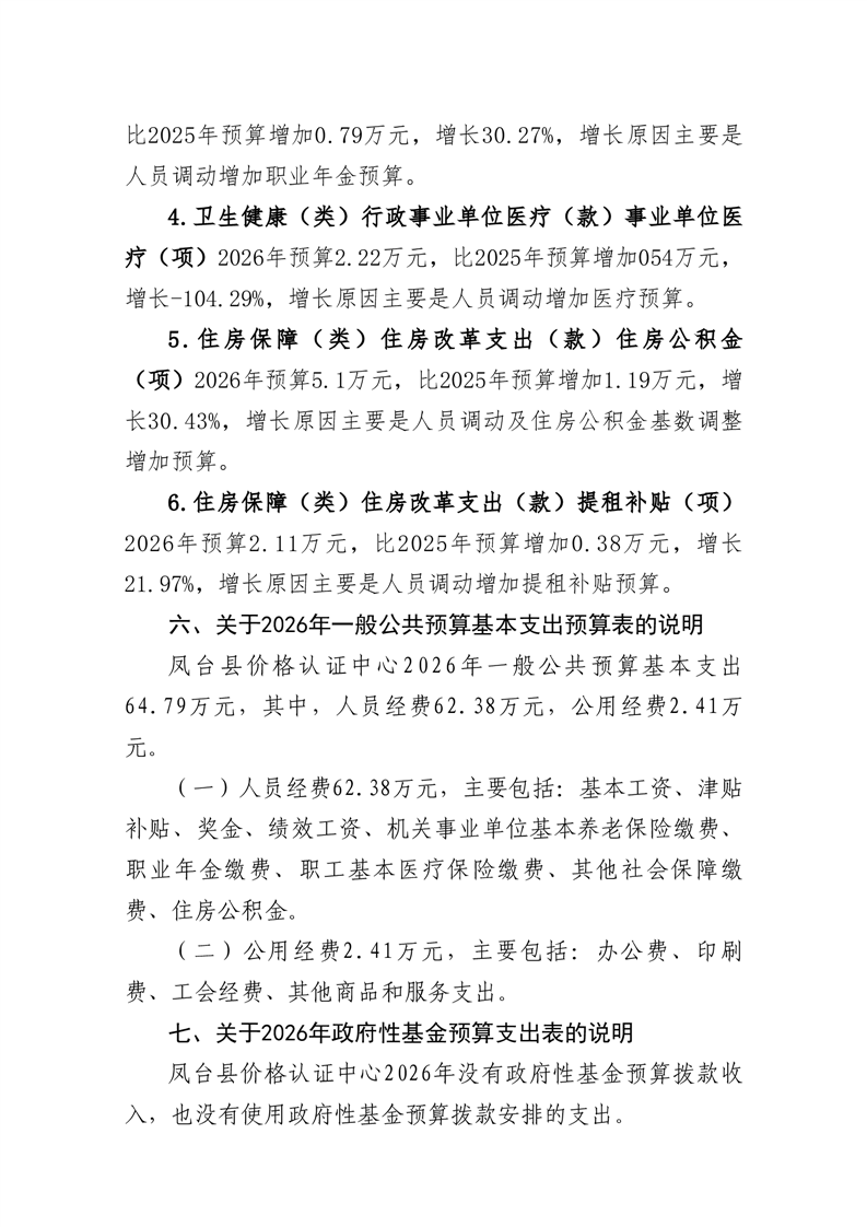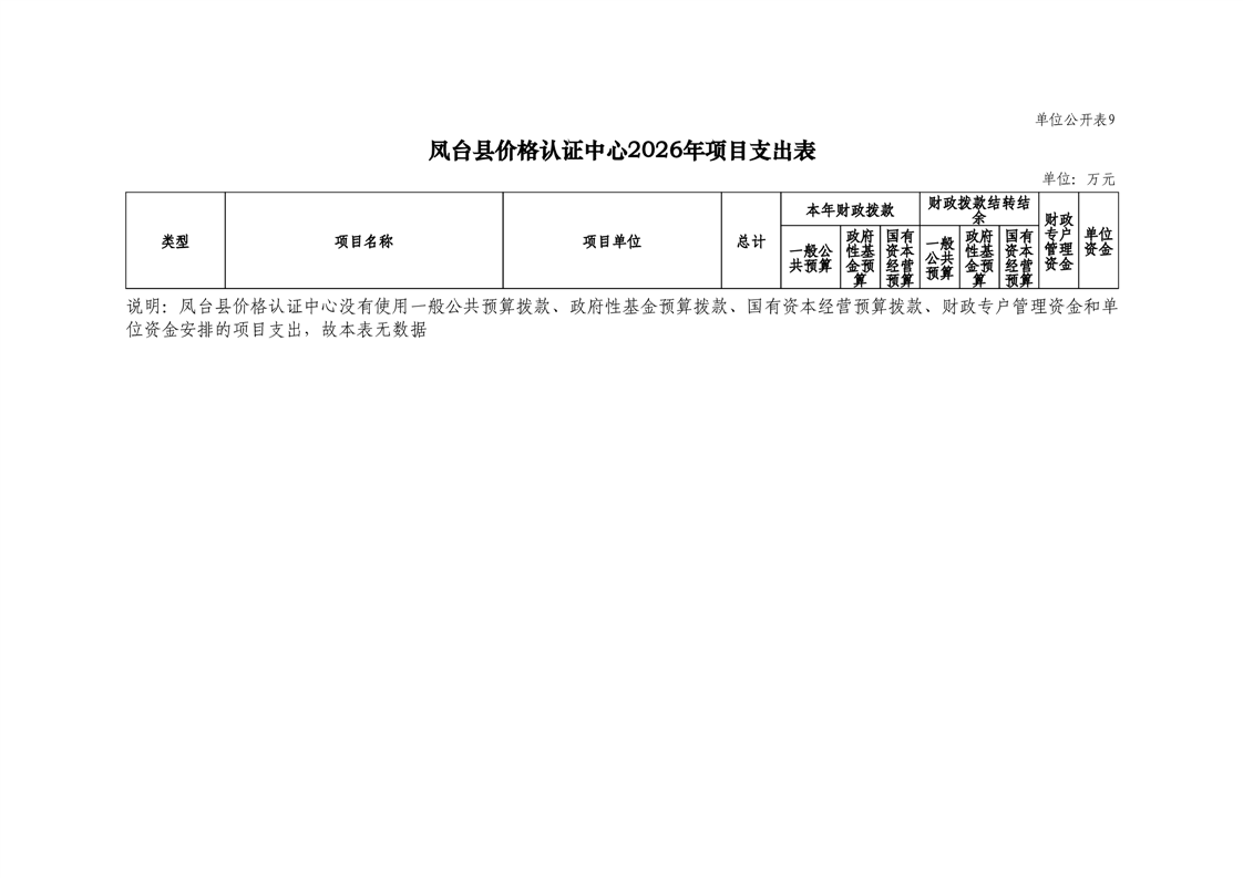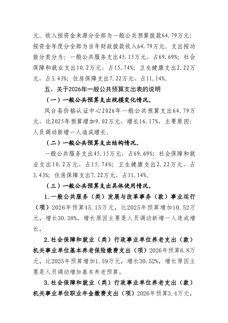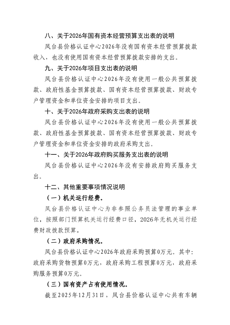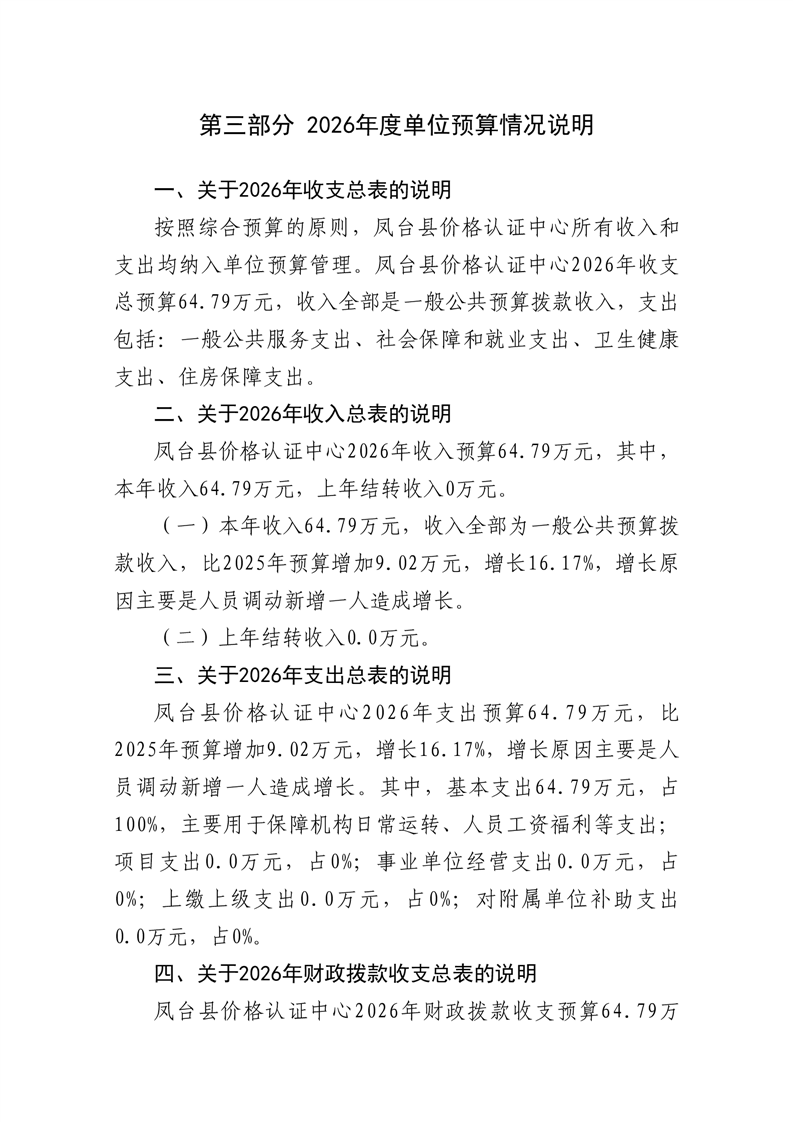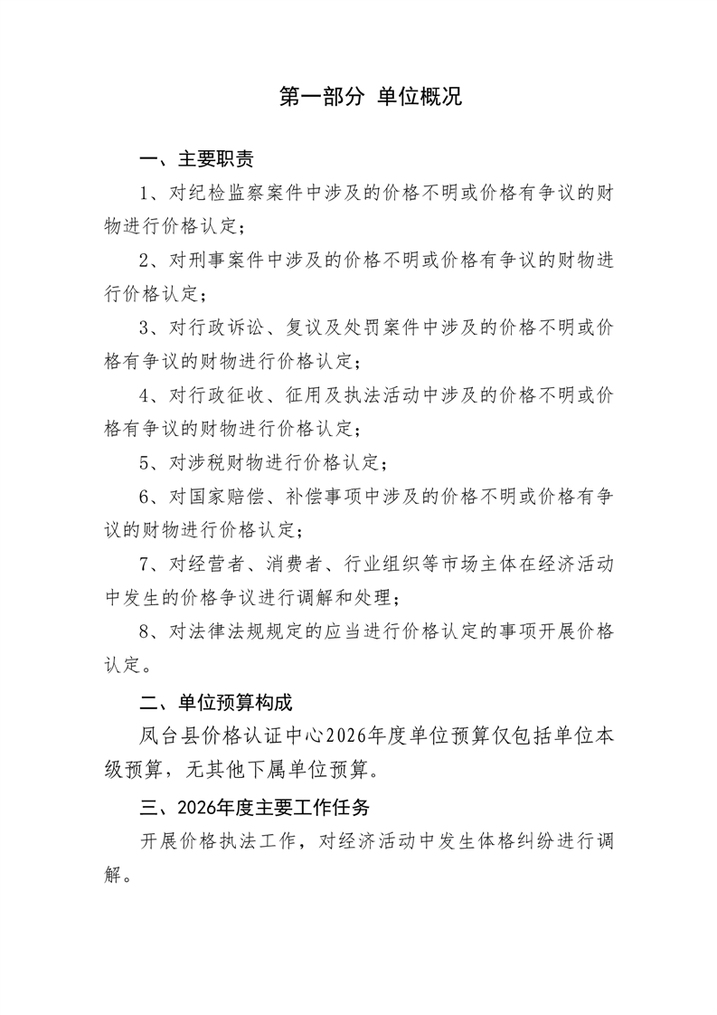 凤台县价格认证中心2026年部门预算