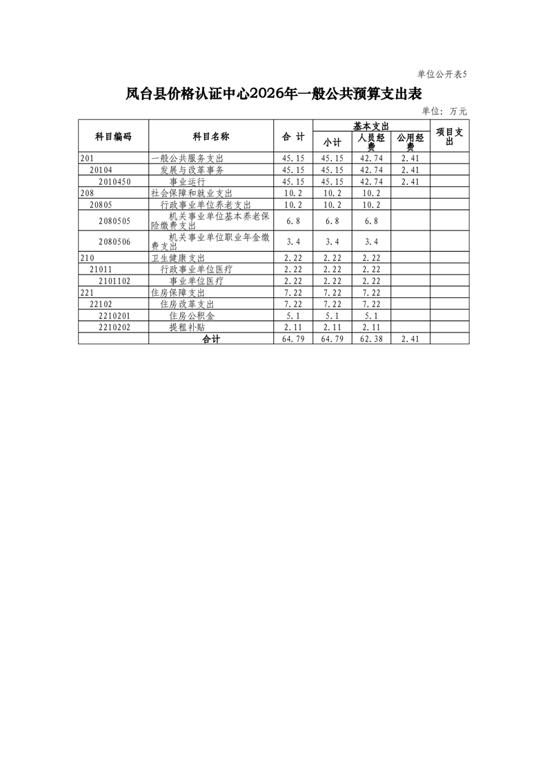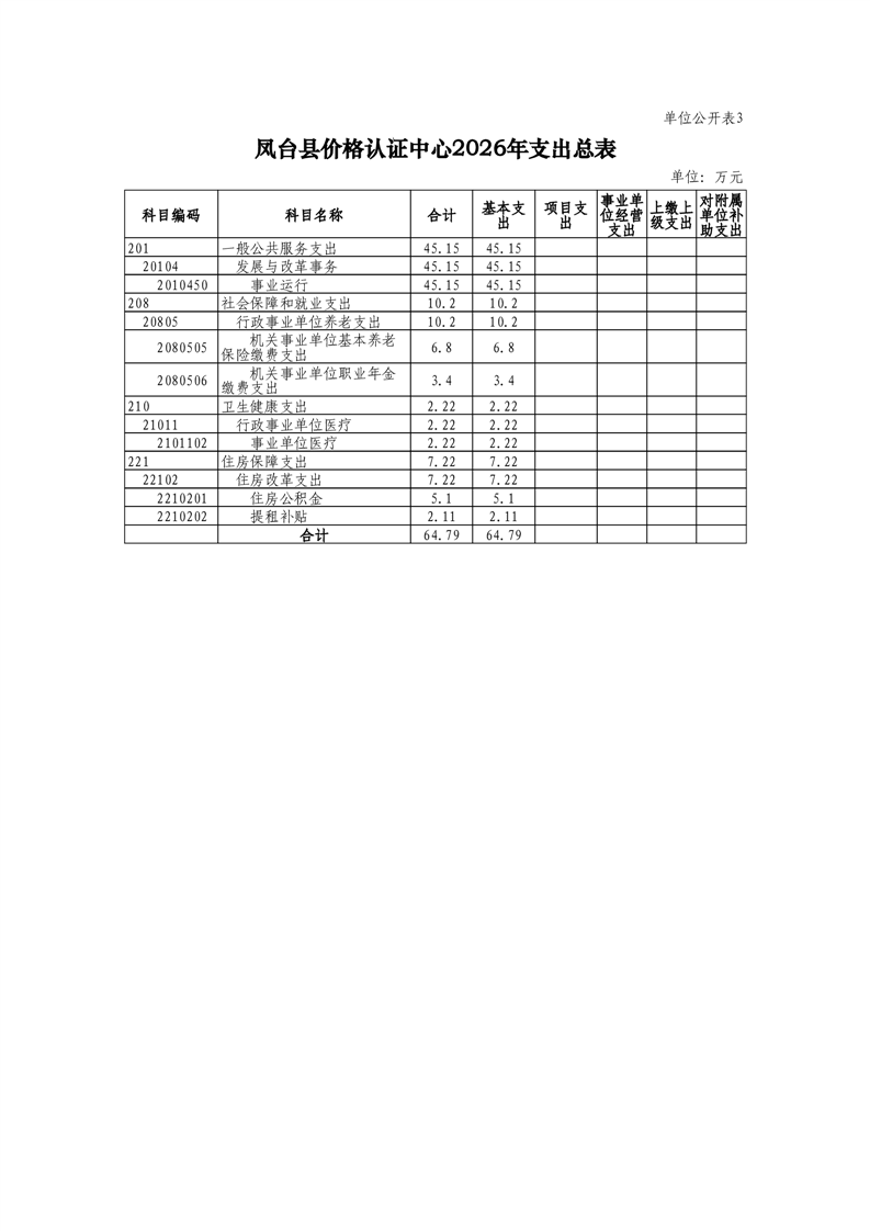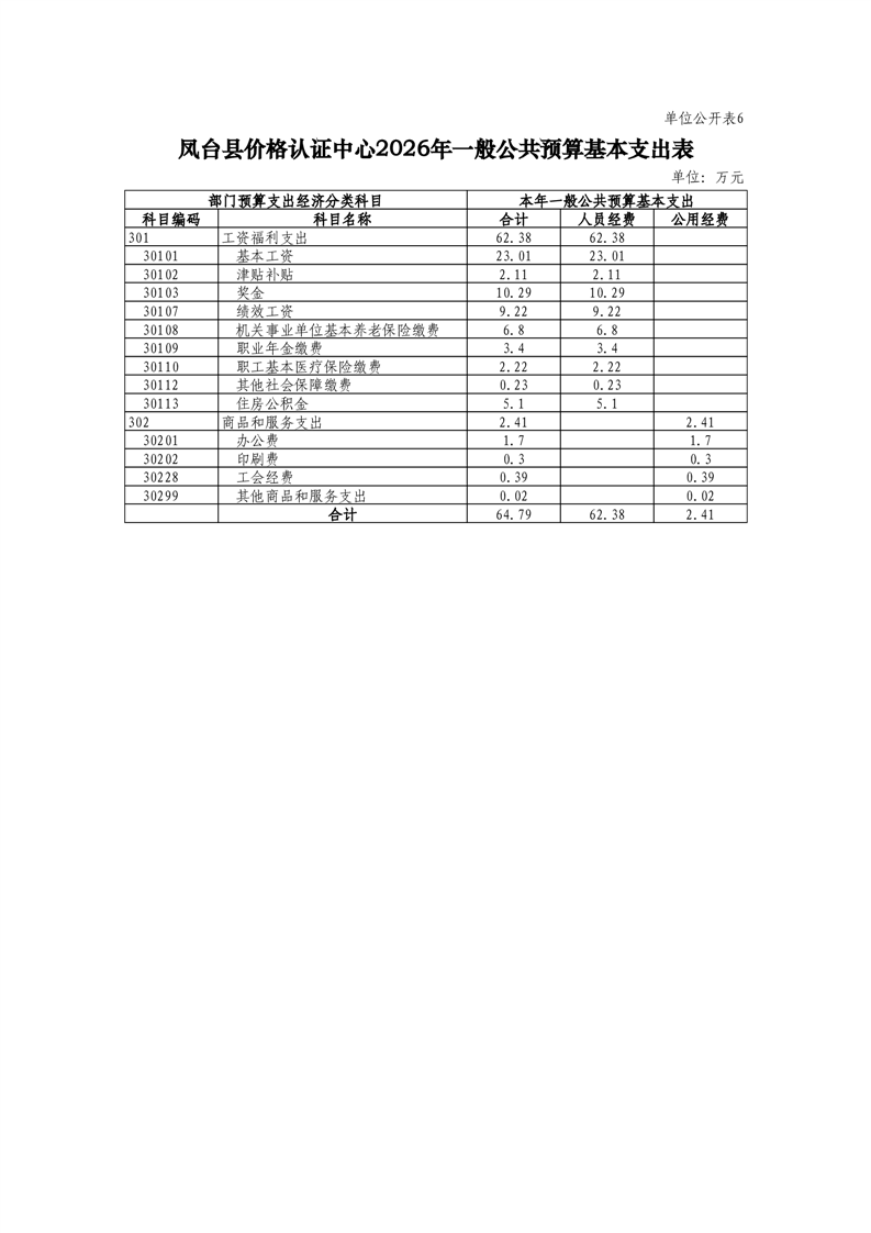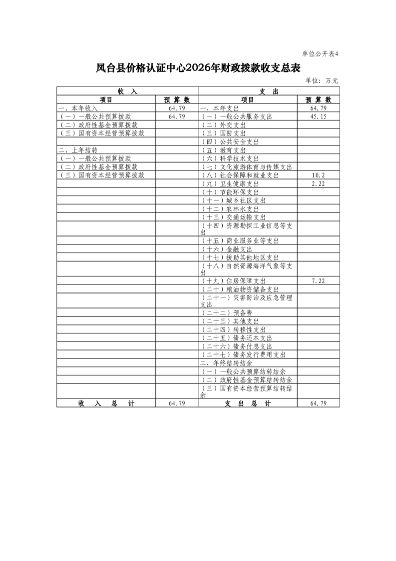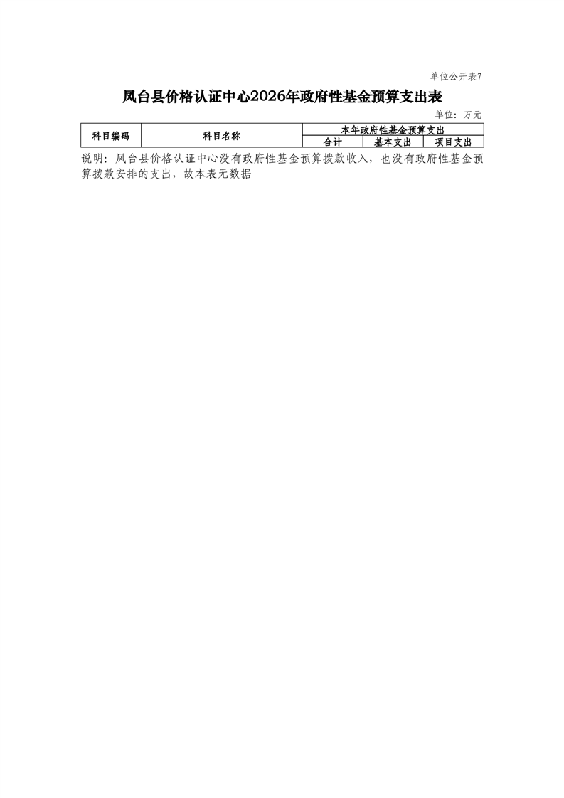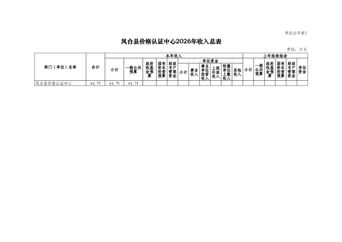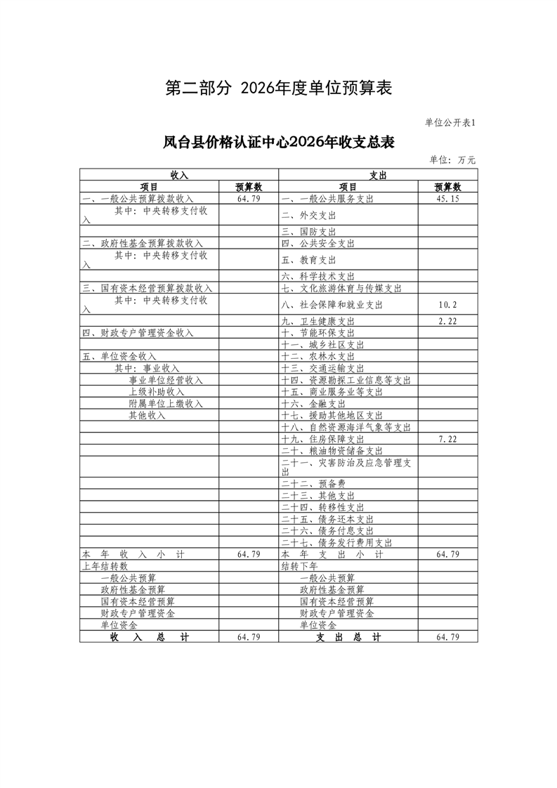 凤台县价格认证中心2026年部门预算