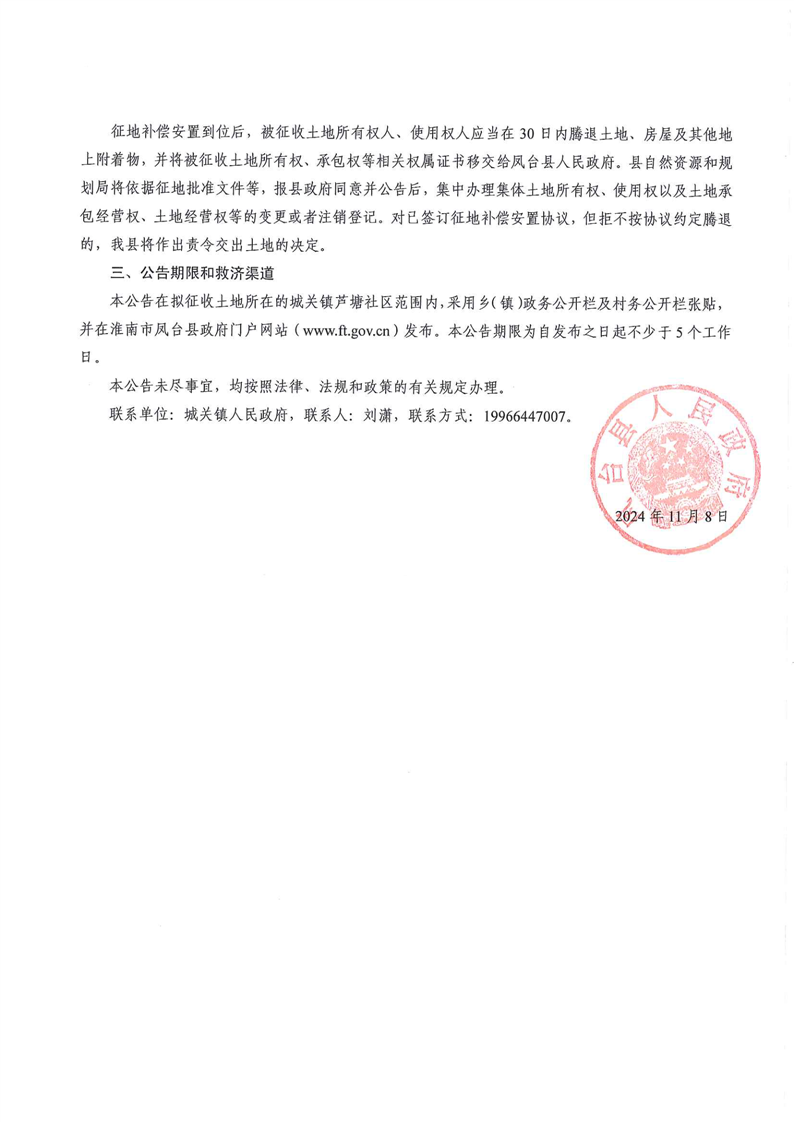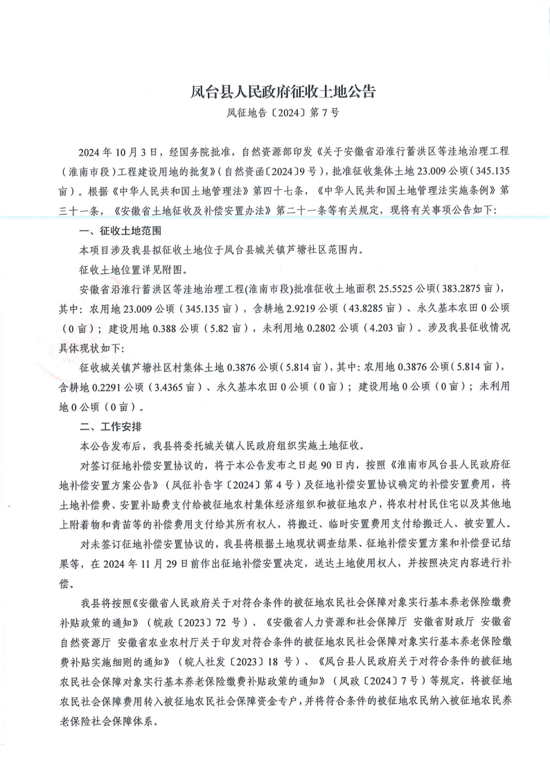 凤台县人民政府征收土地公告〔2024〕第7号