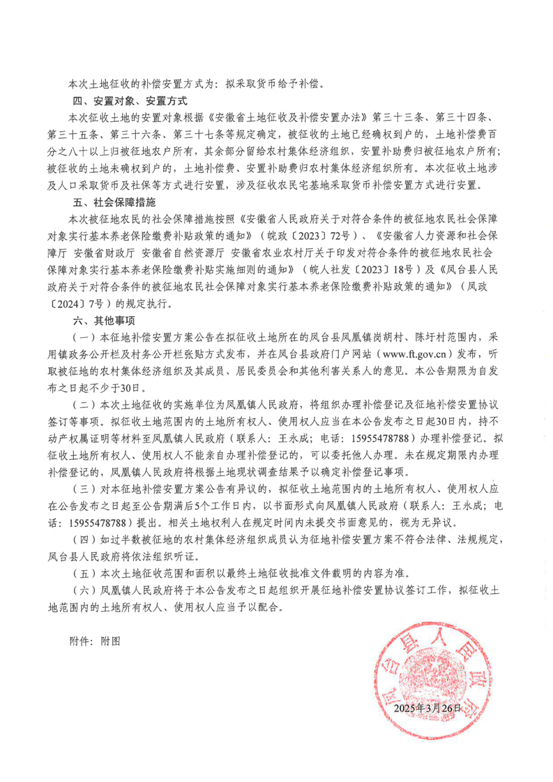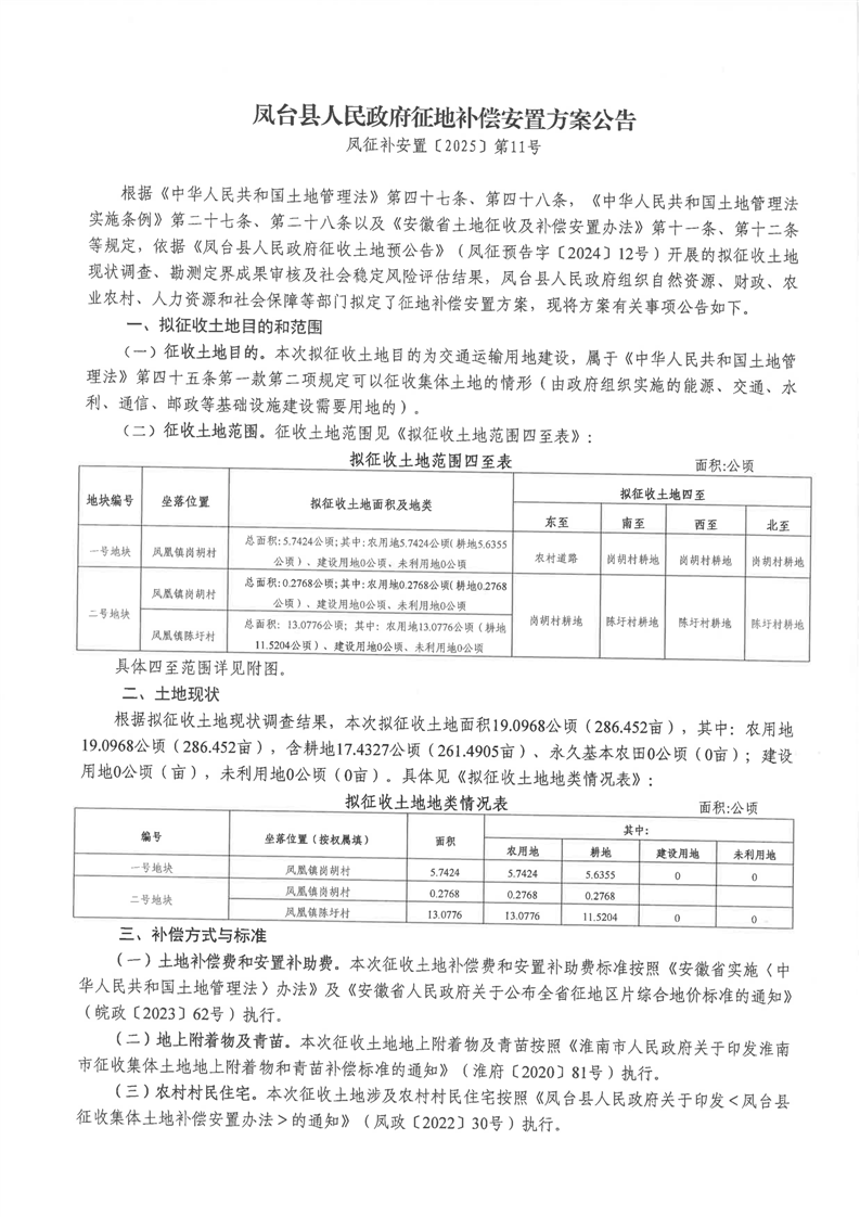 凤台县人民政府征地补偿安置方案公告凤征补安置〔2025〕第11号