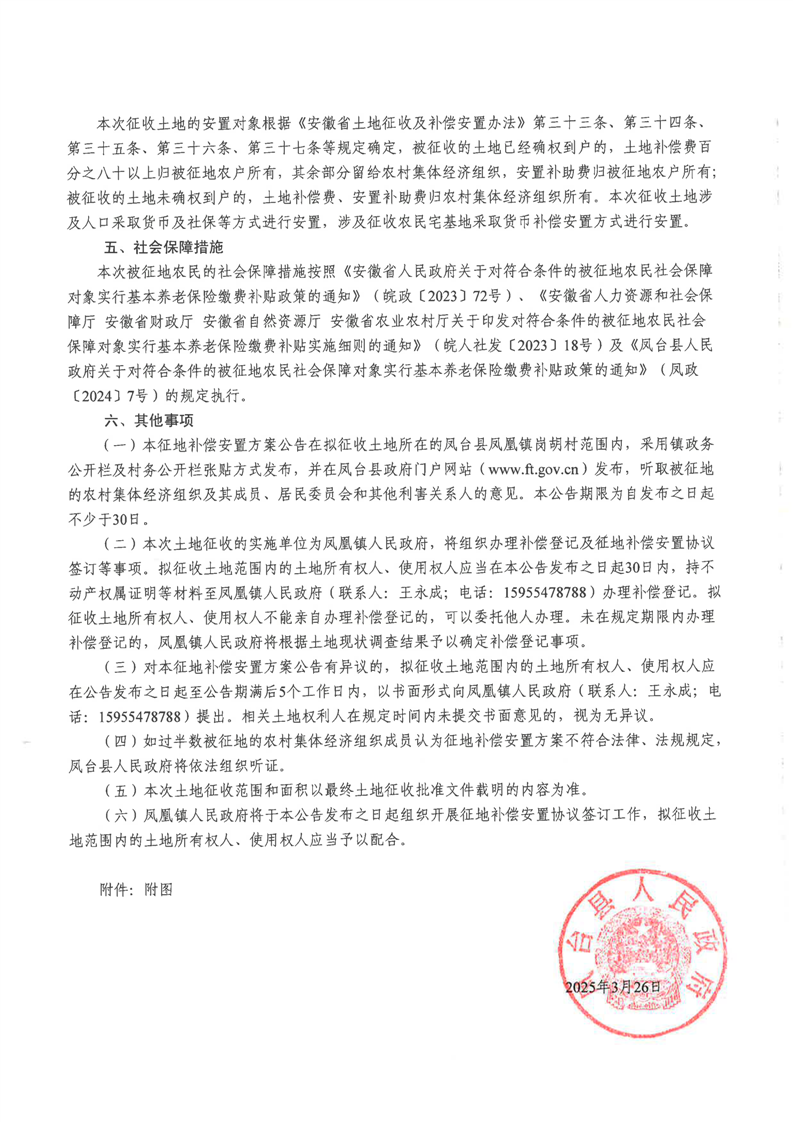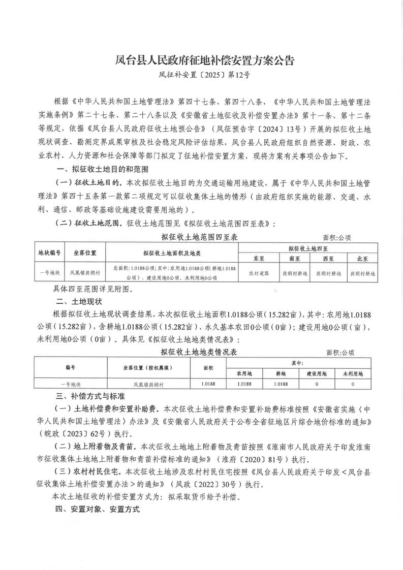 凤台县人民政府征地补偿安置方案公告凤征补安置〔2025〕第12号
