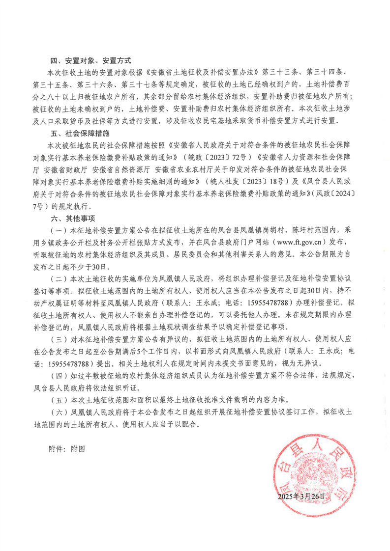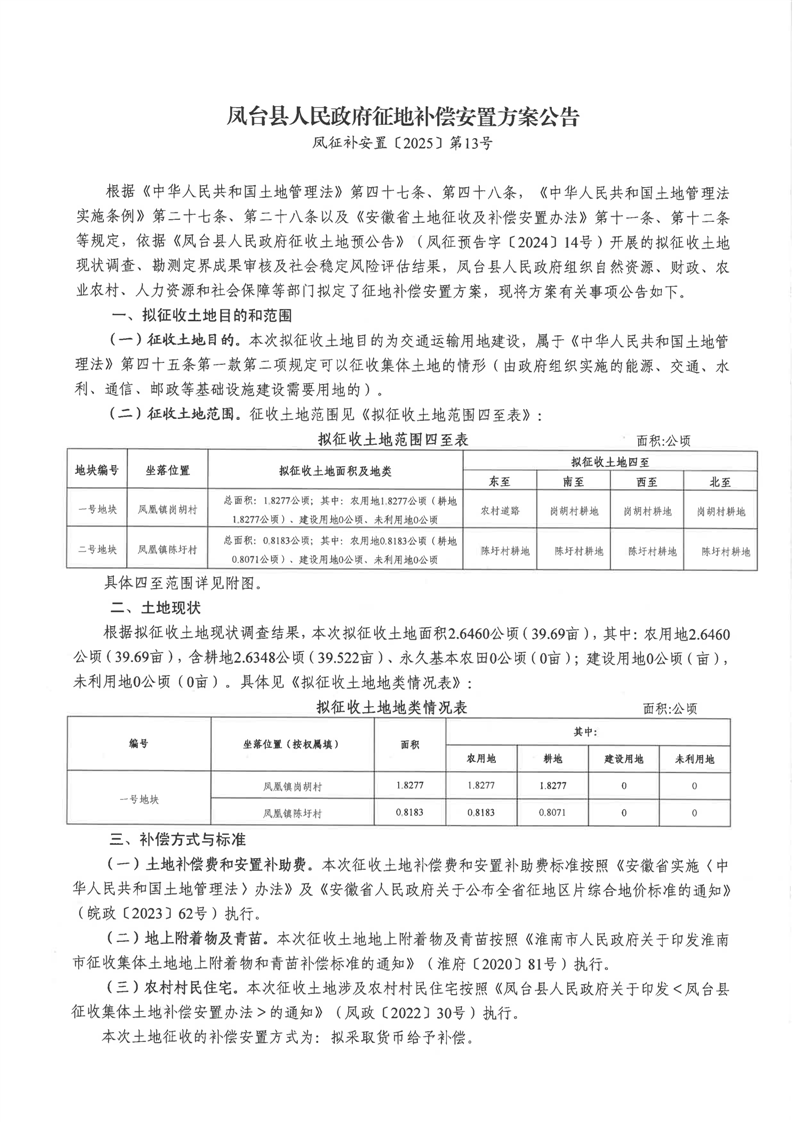 凤台县人民政府征地补偿安置方案公告凤征补安置〔2025〕第13号
