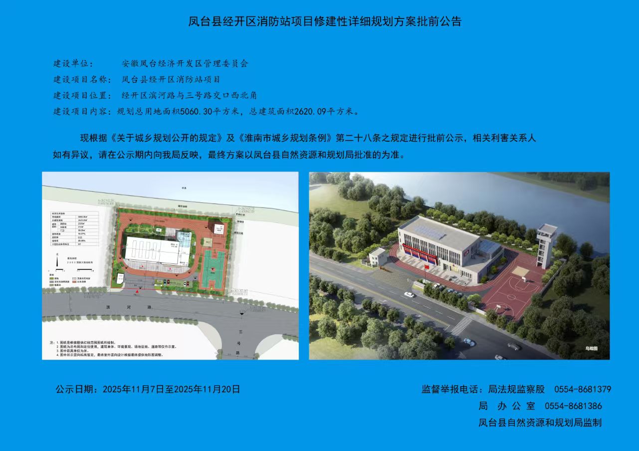 凤台县经开区消防站项目修建性详细规划方案批前公告