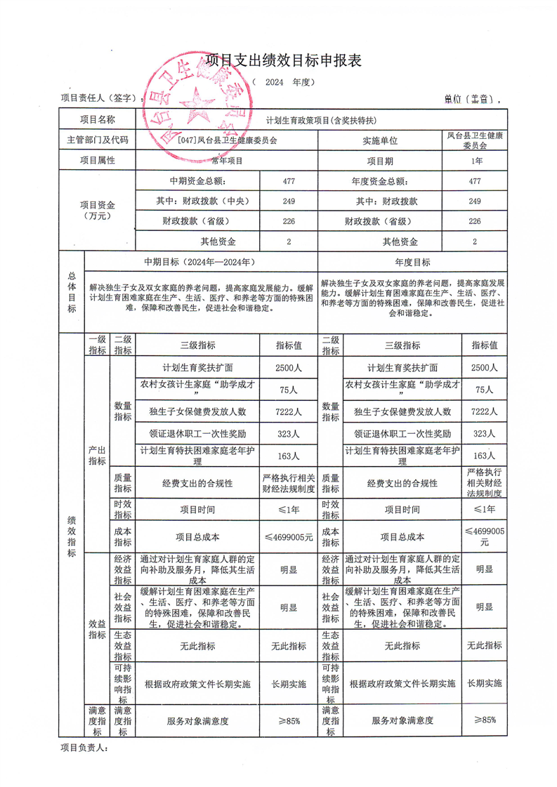 2024年计划生育政策项目(含奖扶特扶)申报表