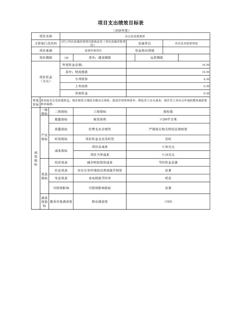 【项目支出绩效自评表】办公室房屋租赁
