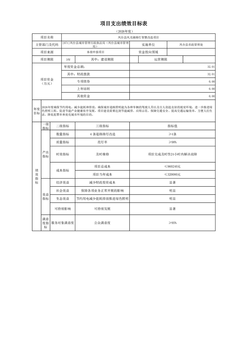 【项目支出绩效自评表】凤台县风光储路灯智慧改造项目