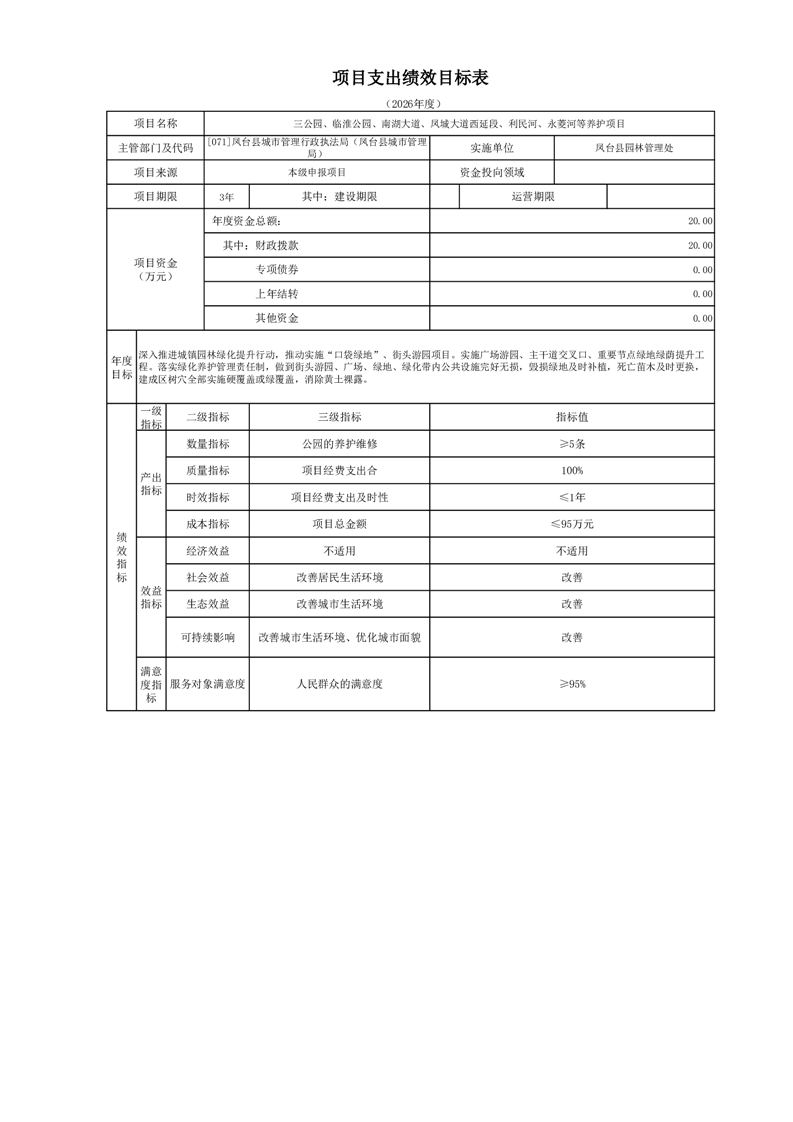 【项目支出绩效自评表】三公园、临淮公园、南湖大道、凤城大道西延段、利民河、永菱河等养护项目
