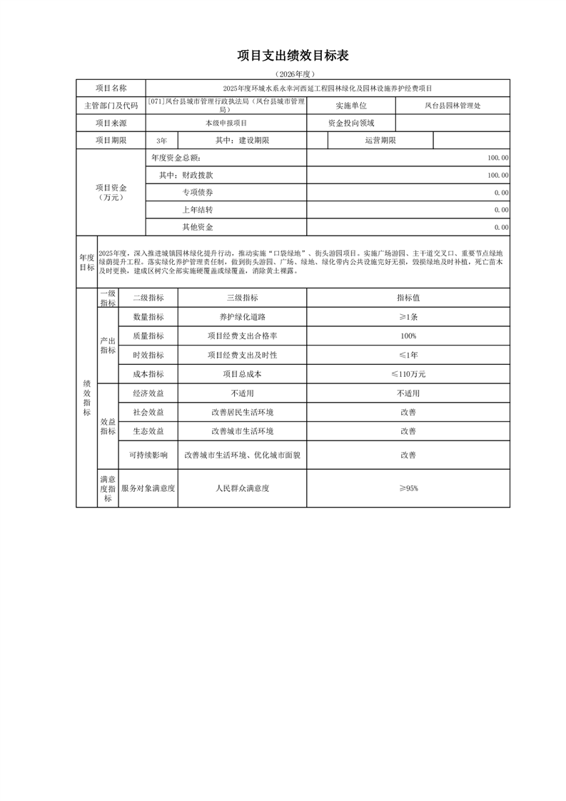 【项目支出绩效自评表】2025年度环城水系永幸河西延工程园林绿化及园林设施养护经费项目