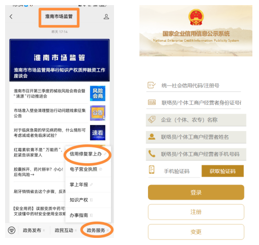 淮南市市场监督管理局拓展信用修复渠道,率先在淮南市场监管微信公众号开通“信用修复掌上办”模块,让信用修复不受时间、地点限制,只要一部手机即可“一键申请”“即申即办”。使用流程如下: