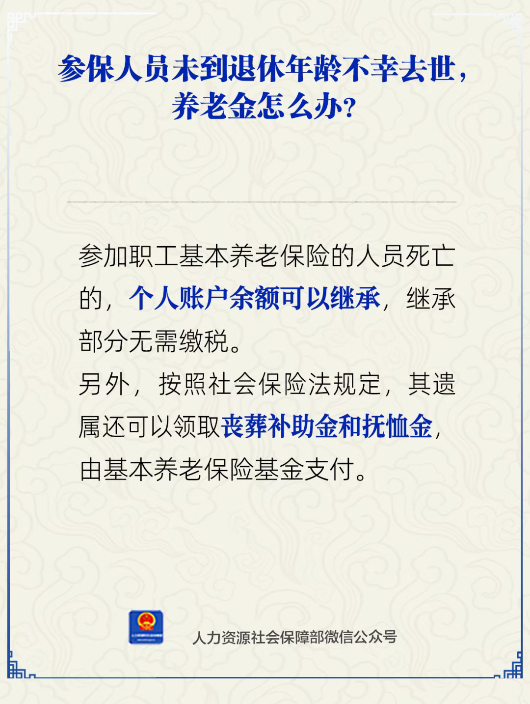 【人社日课·6月20日】参保人员未到退休年龄不幸去世,养老金怎么办?