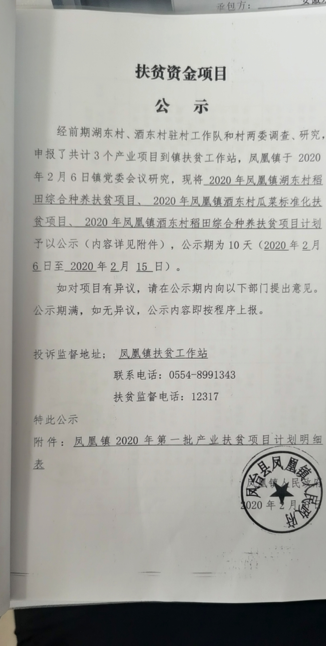 凤凰镇扶贫资金项目公示