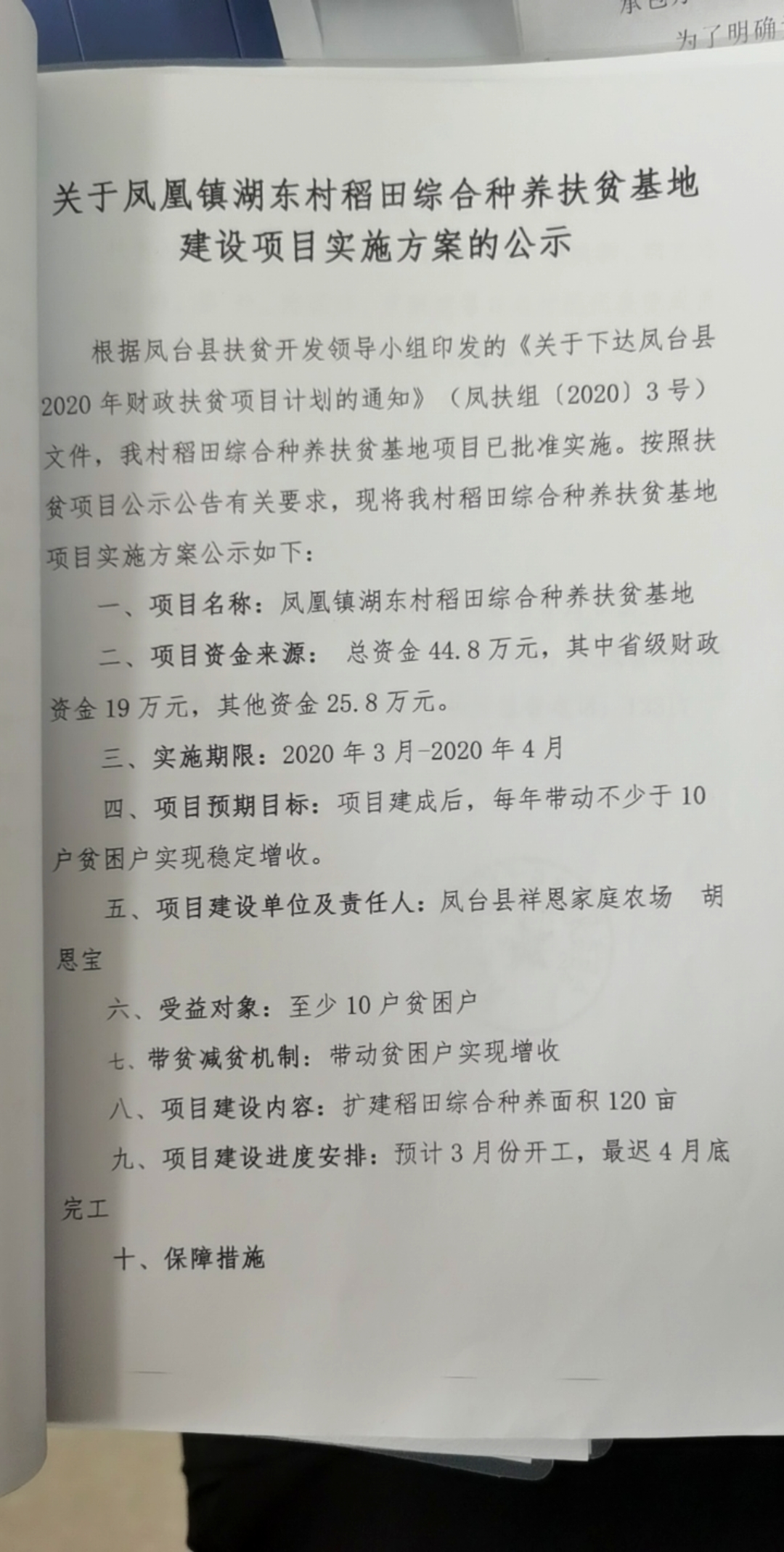 凤凰镇湖东村稻田综合种养扶贫基地建设实施方案公示