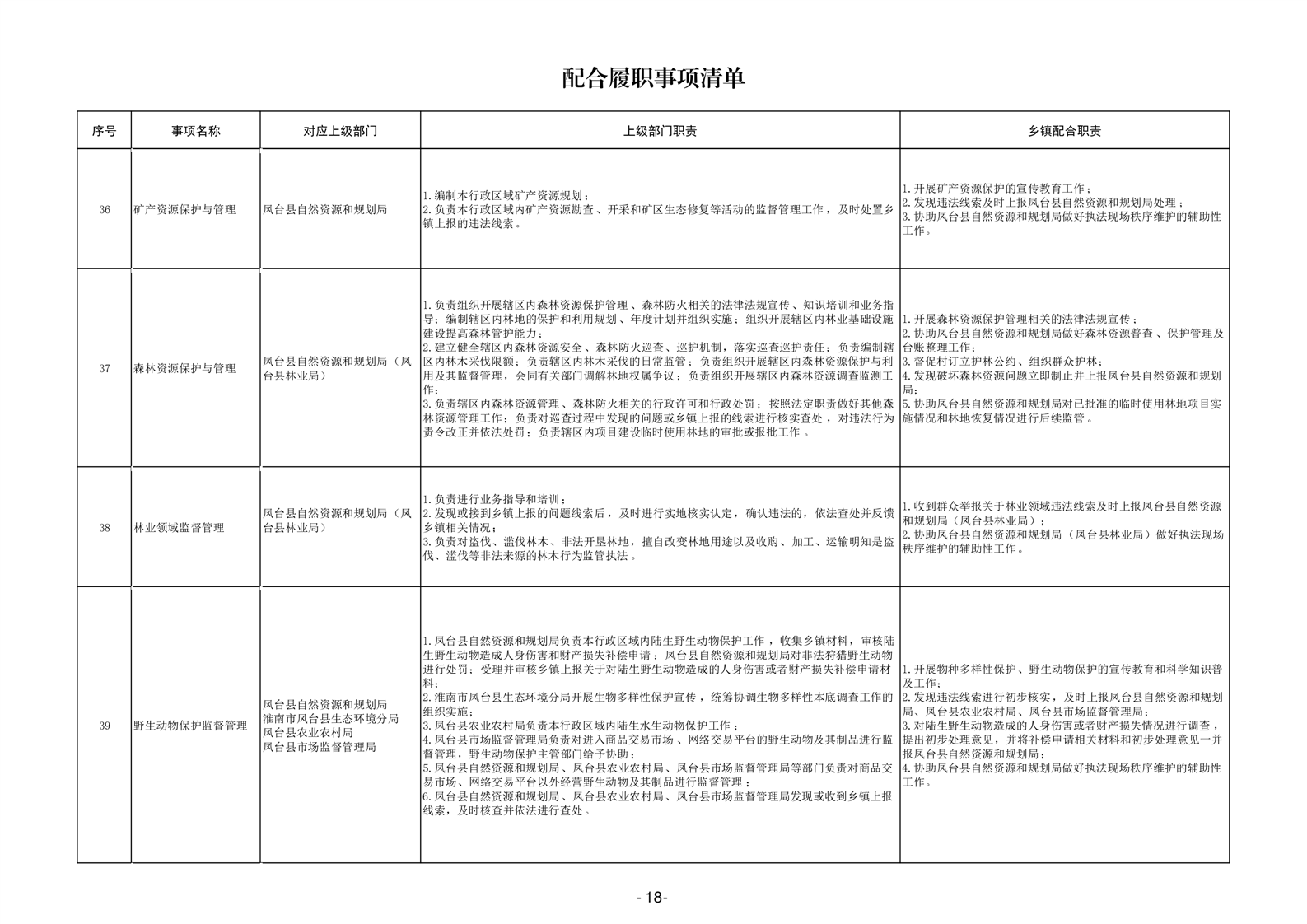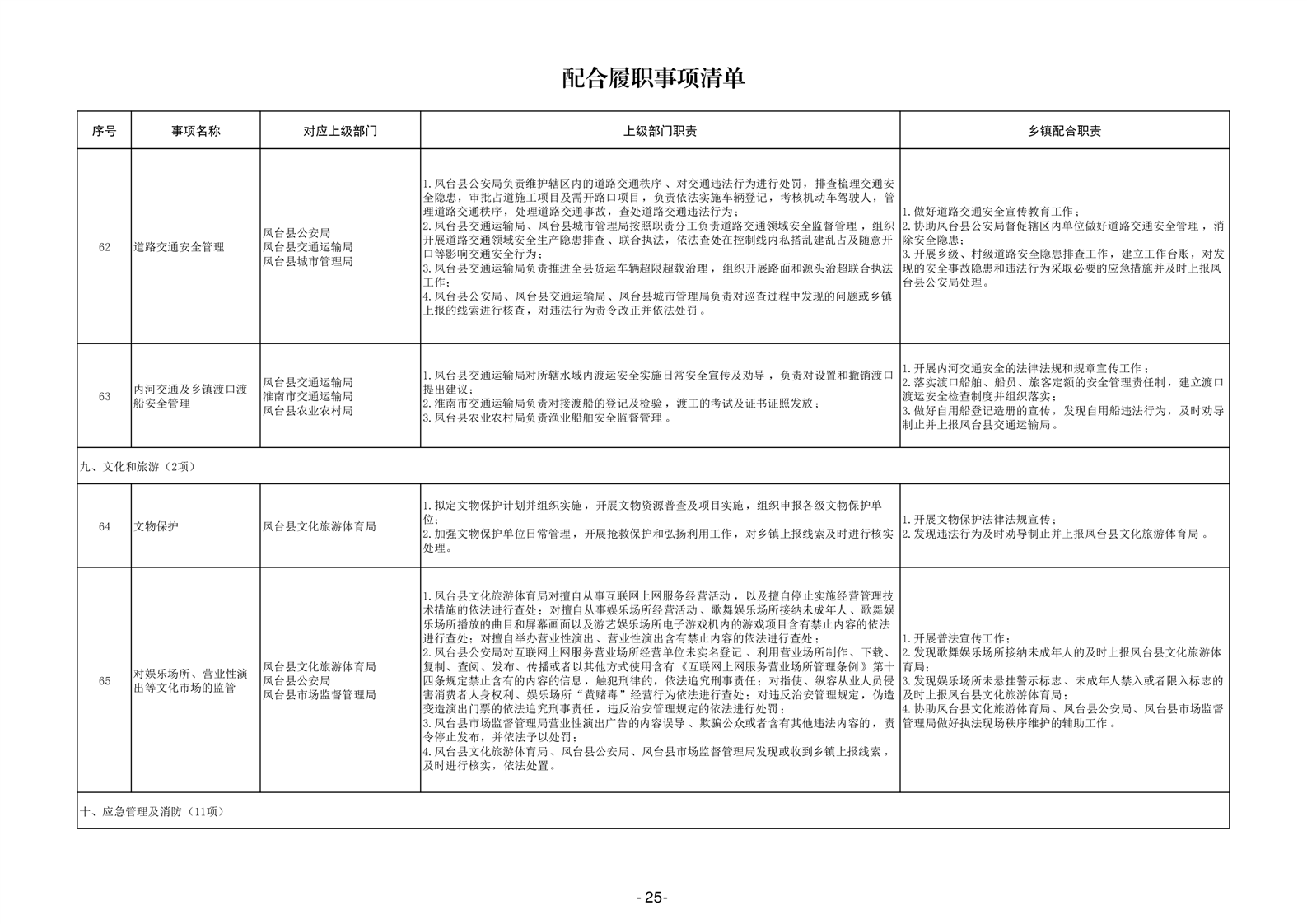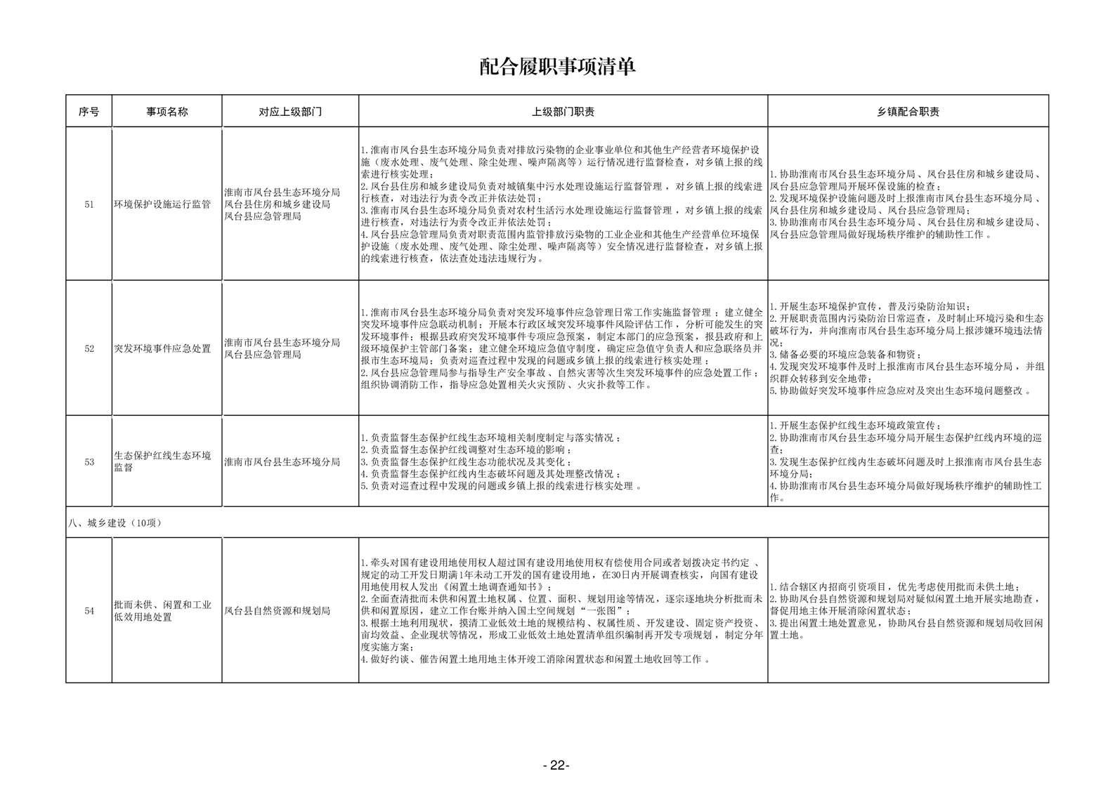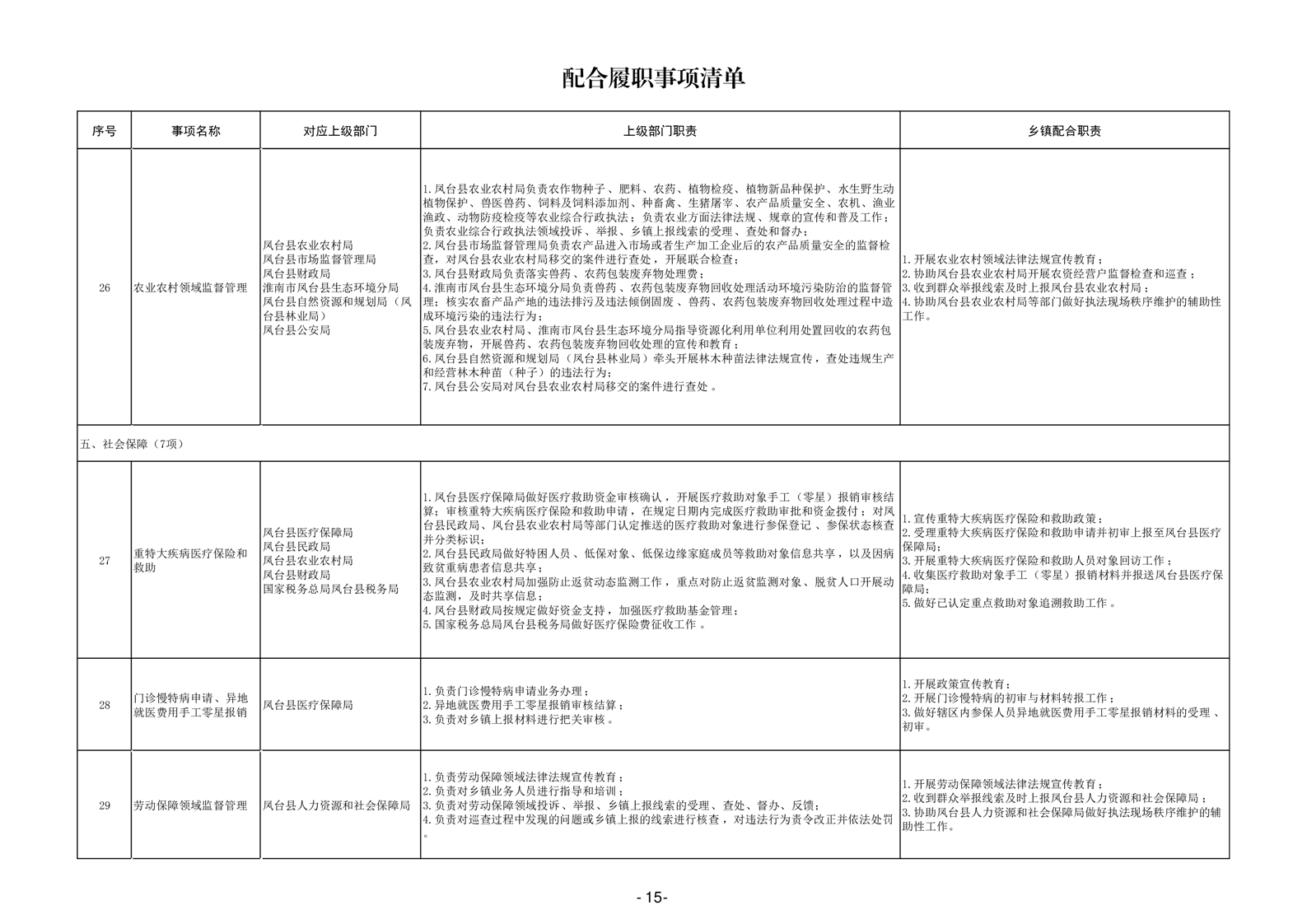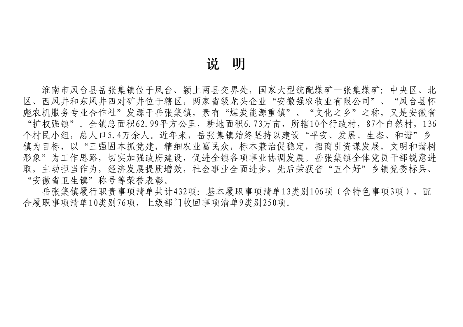 淮南市凤台县岳张集镇履职事项清单