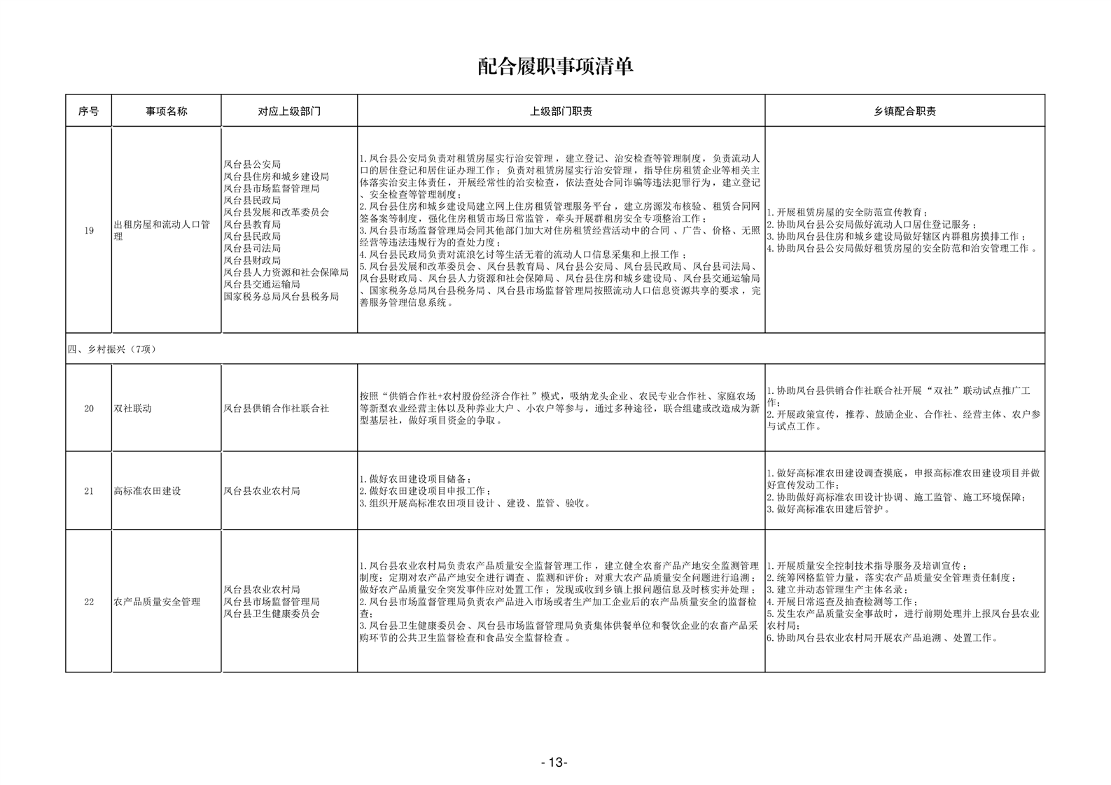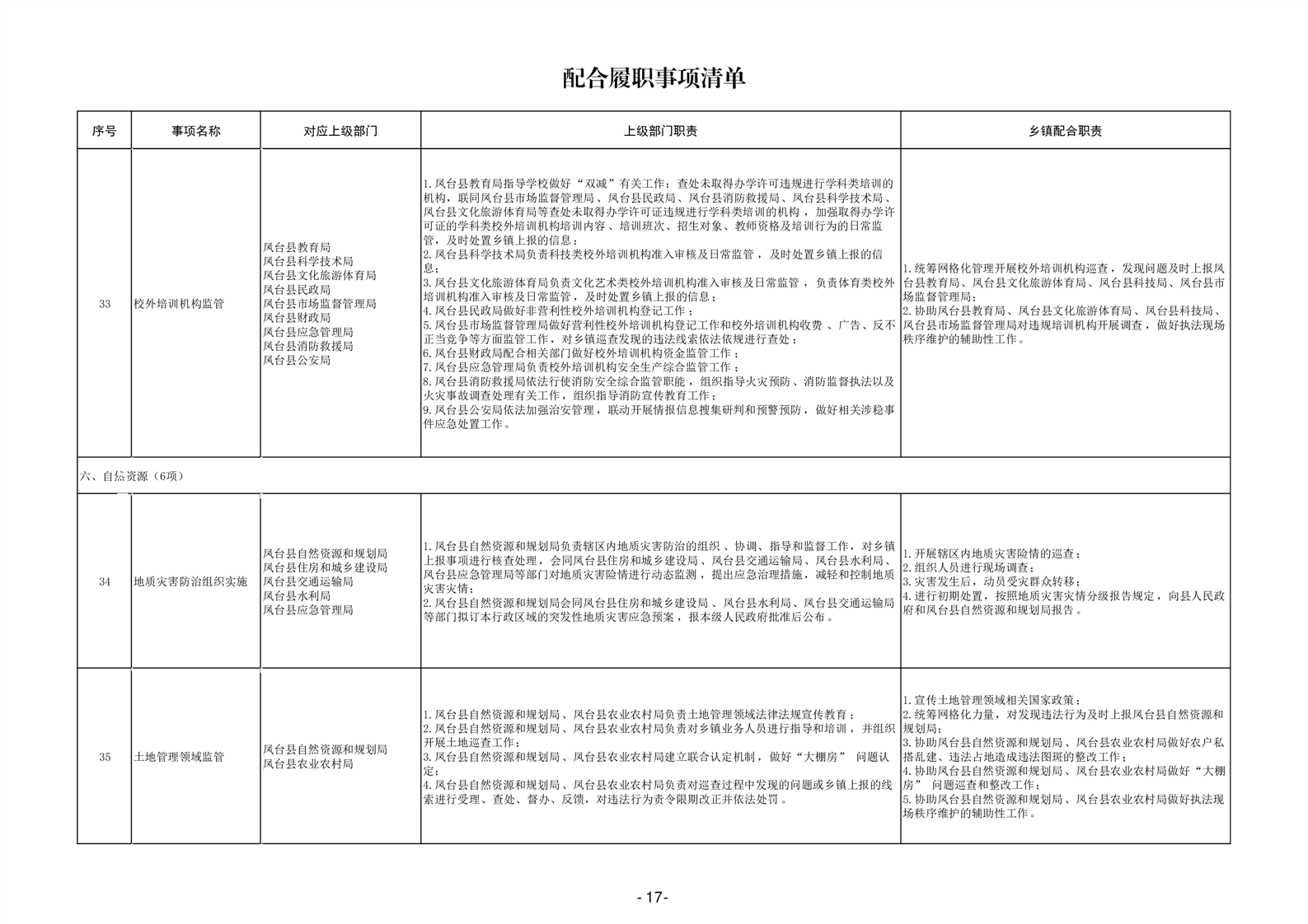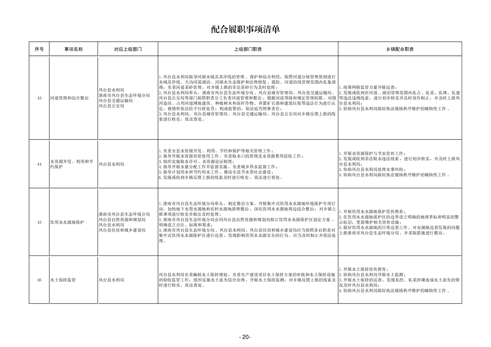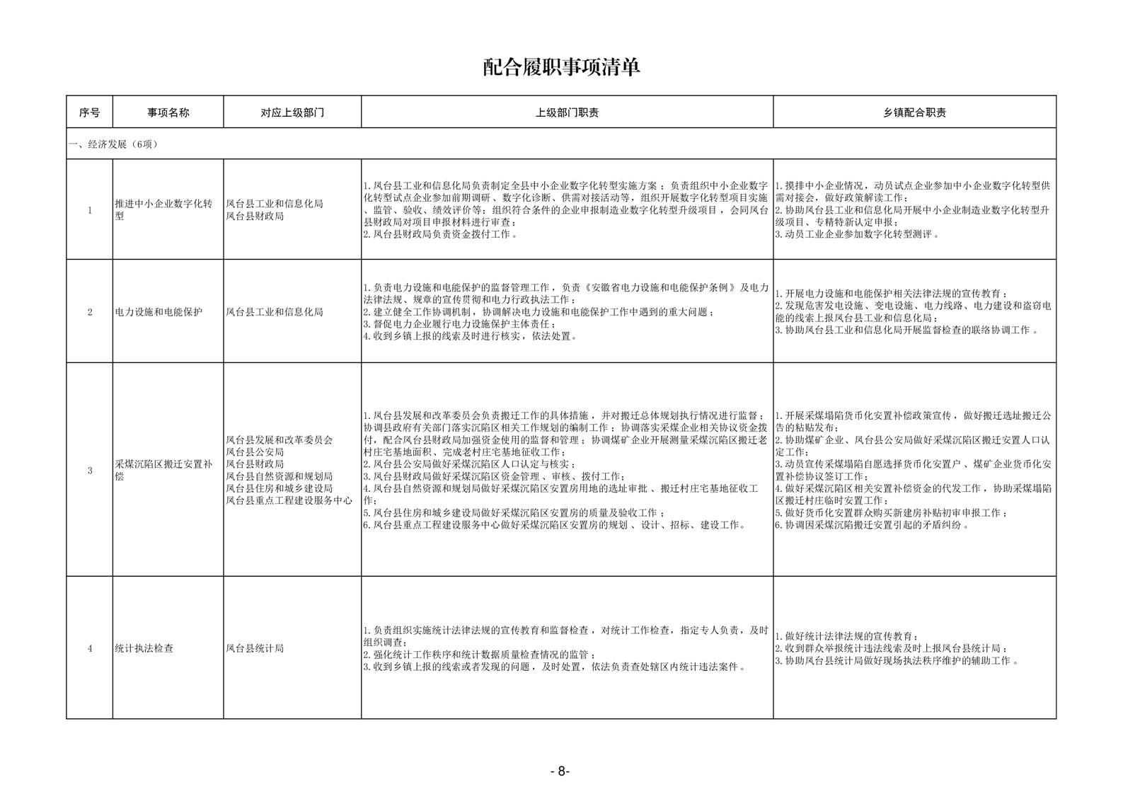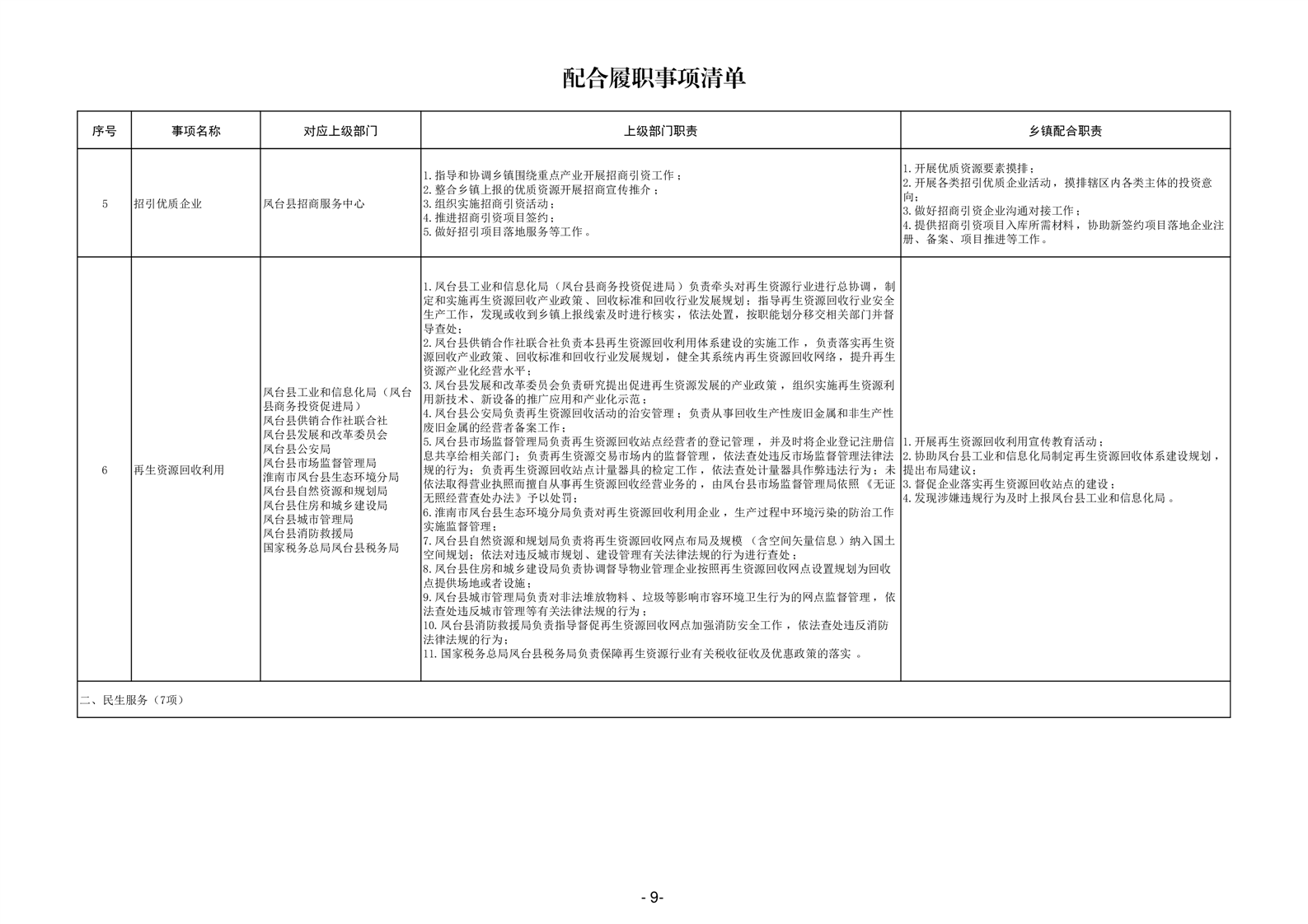 淮南市凤台县岳张集镇履职事项清单