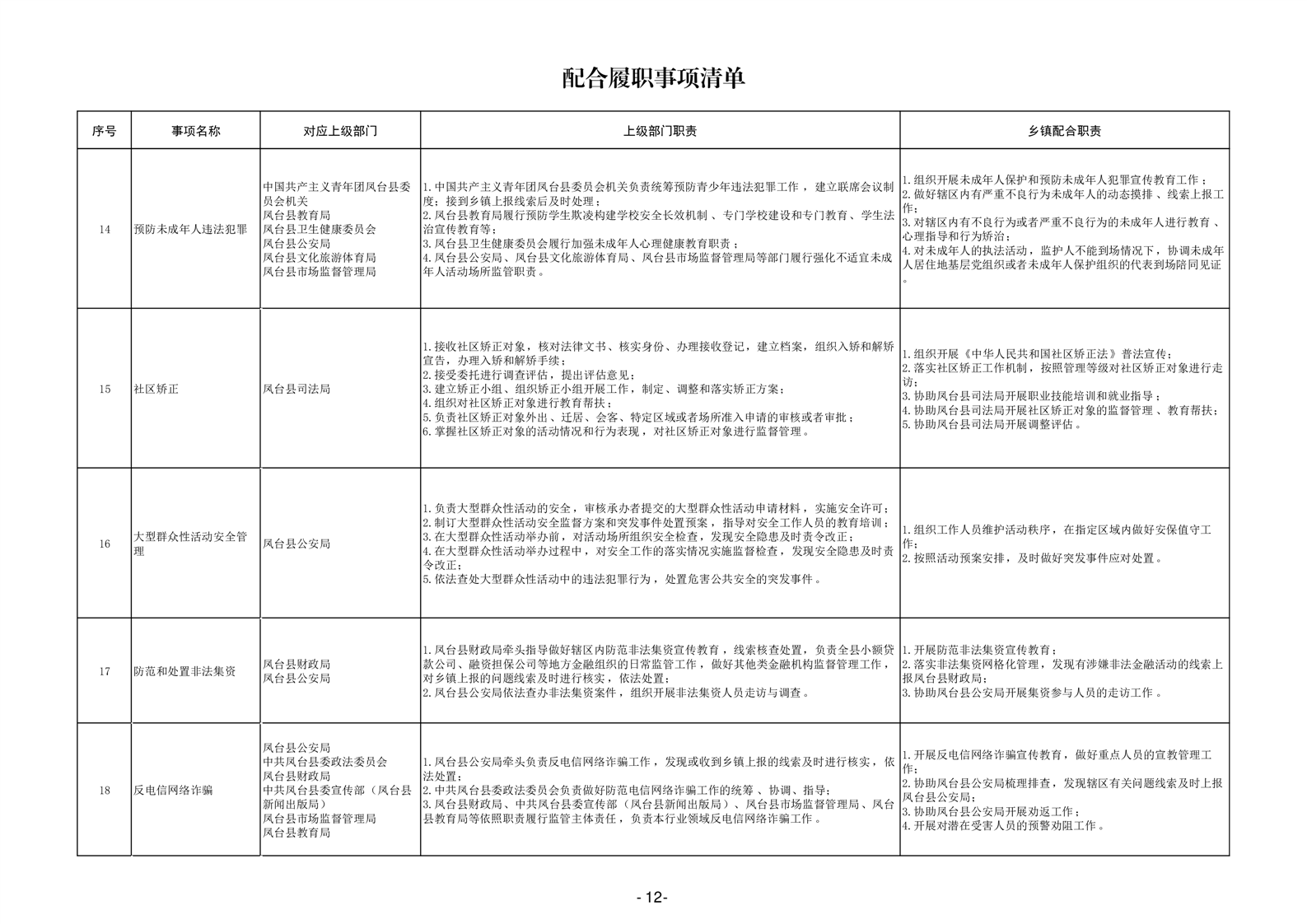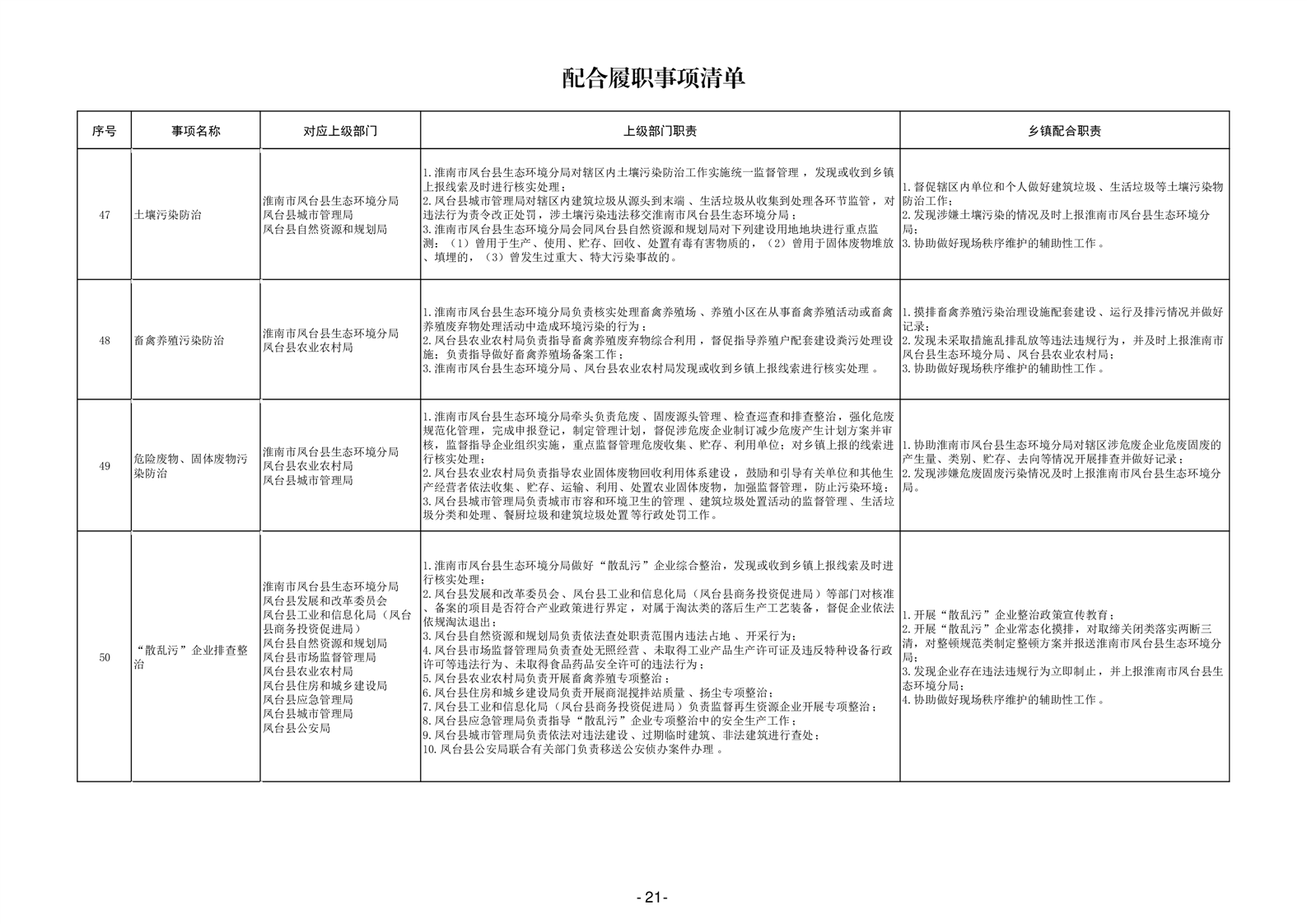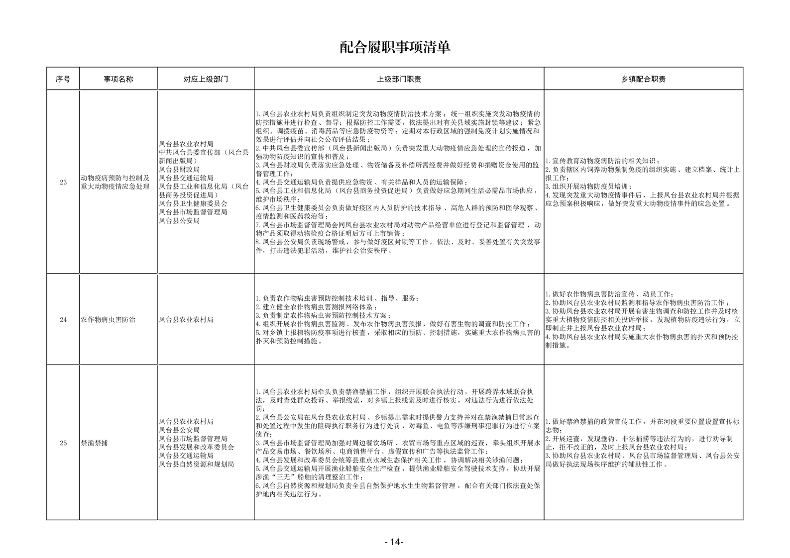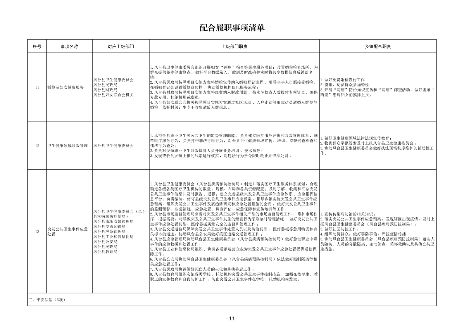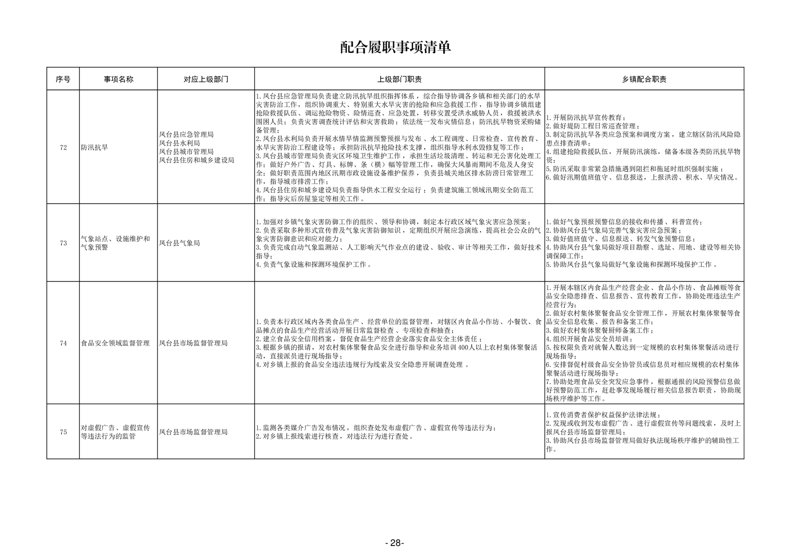 淮南市凤台县岳张集镇履职事项清单