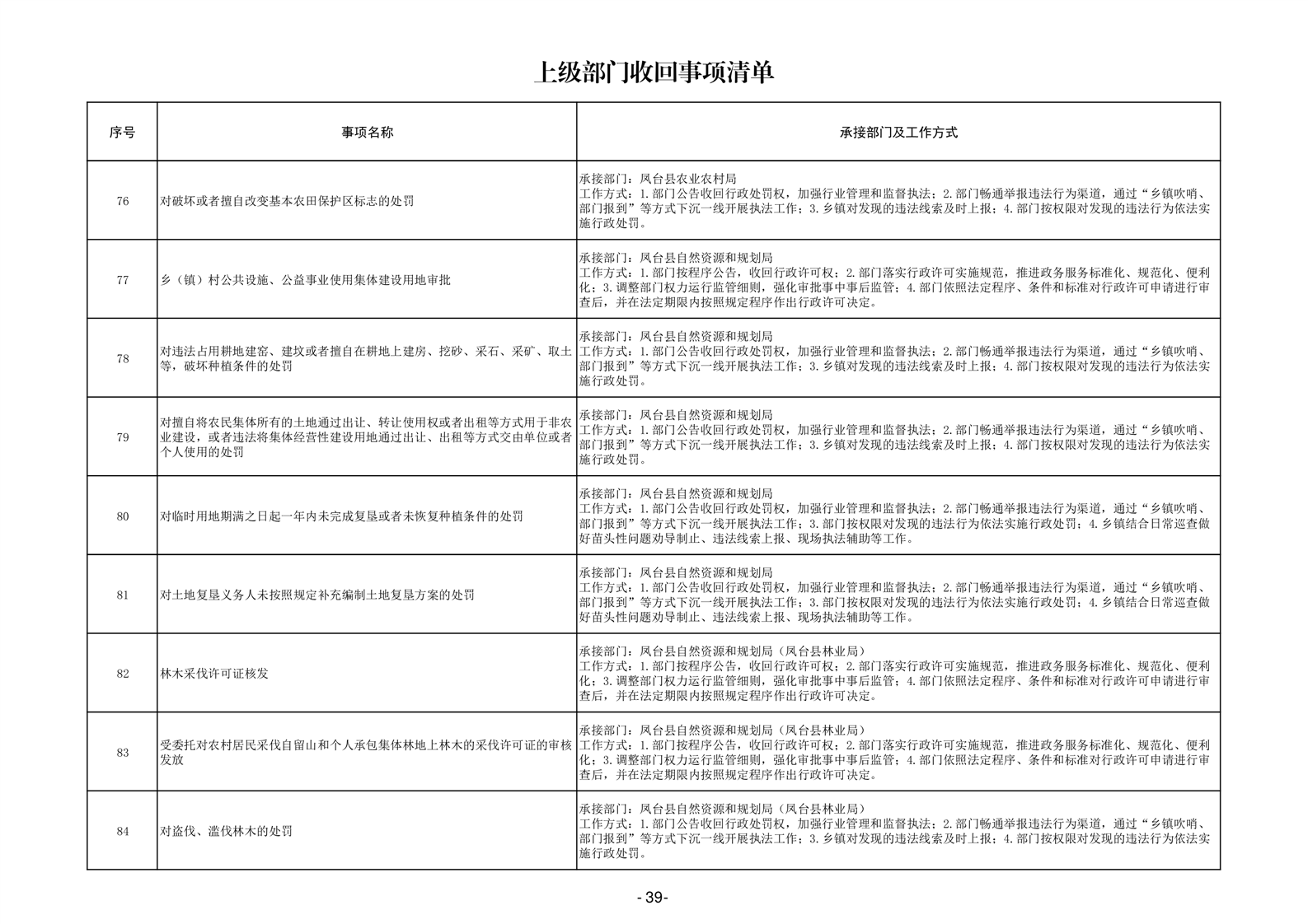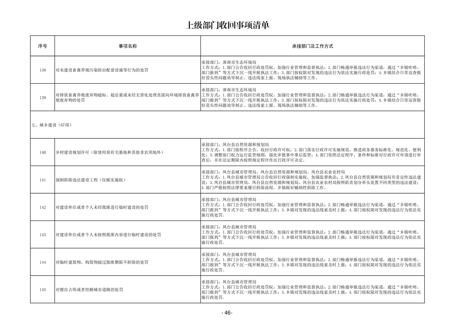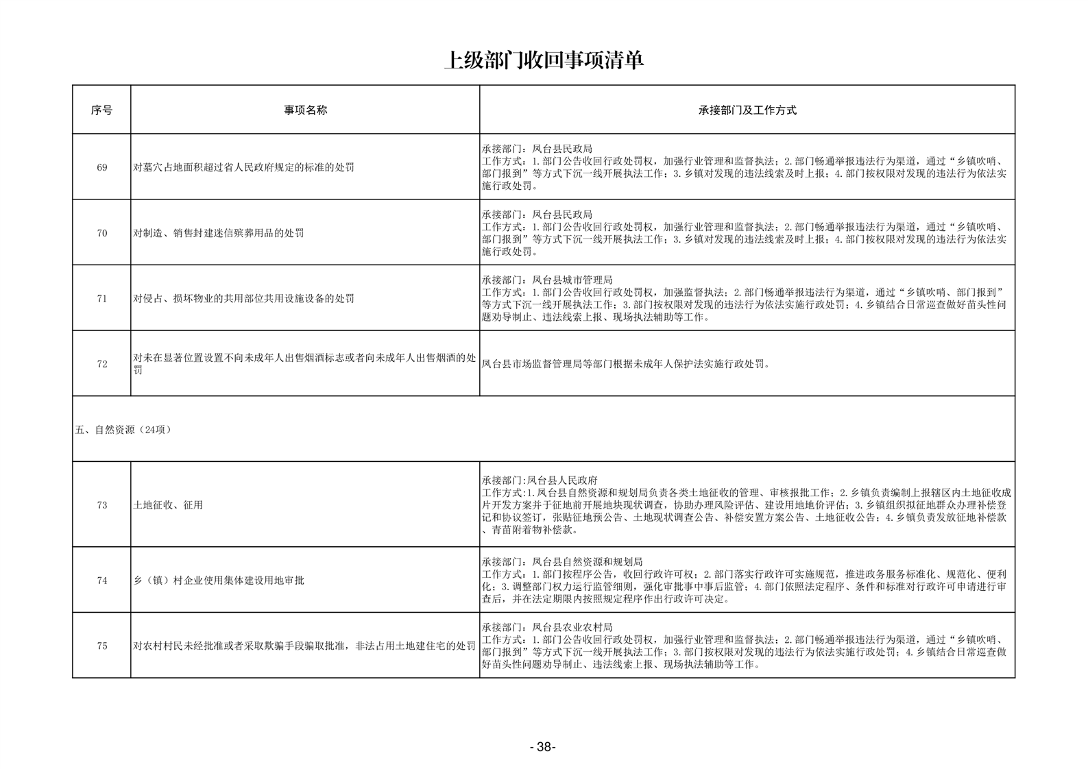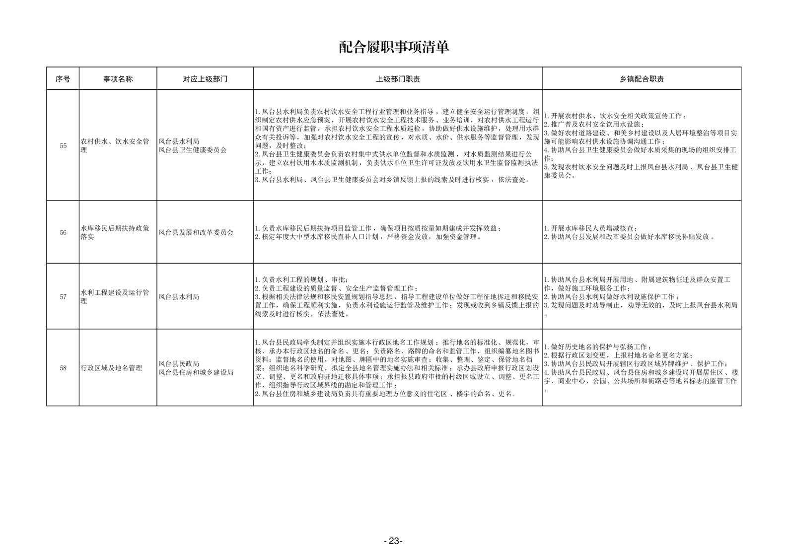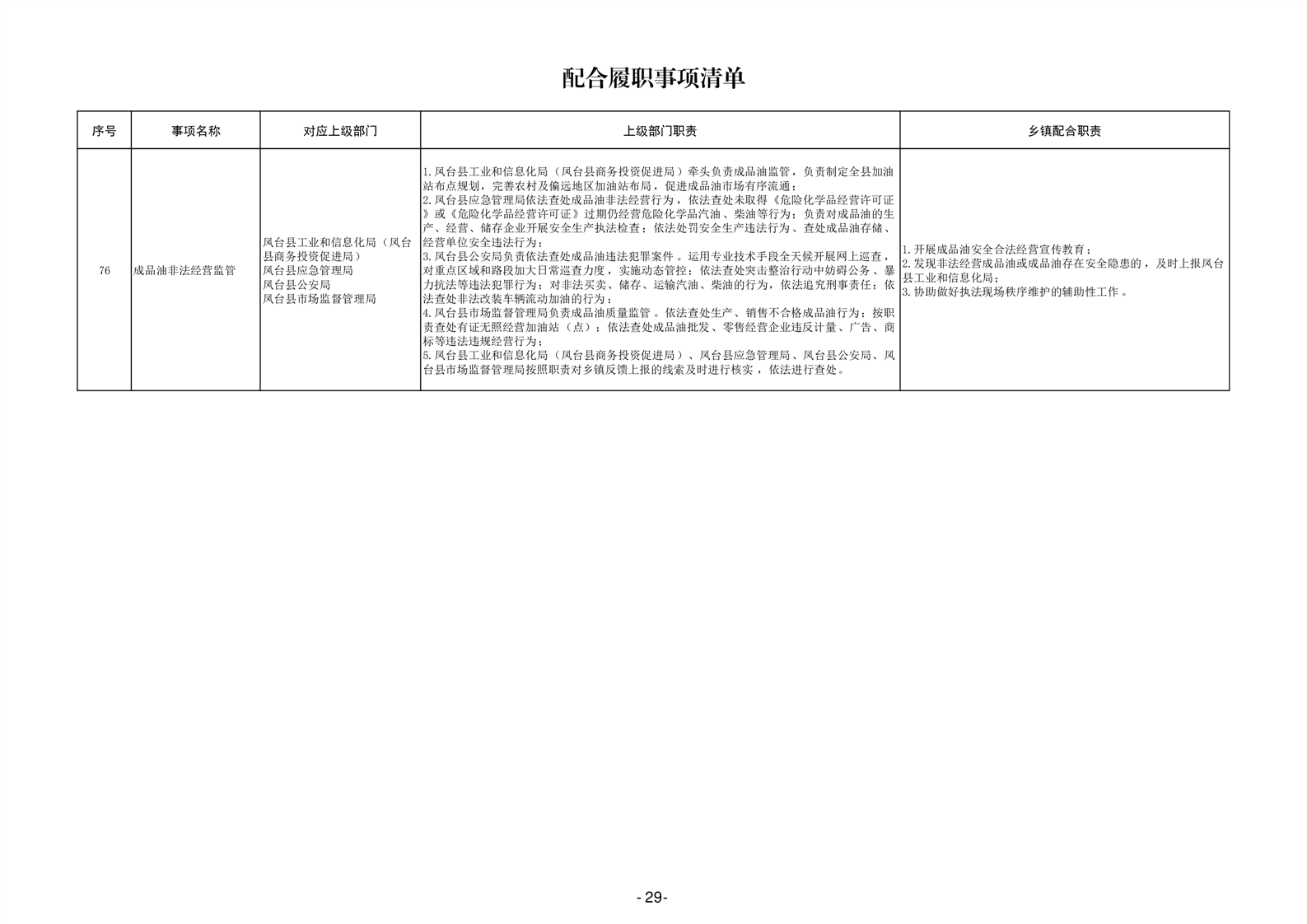淮南市凤台县岳张集镇履职事项清单