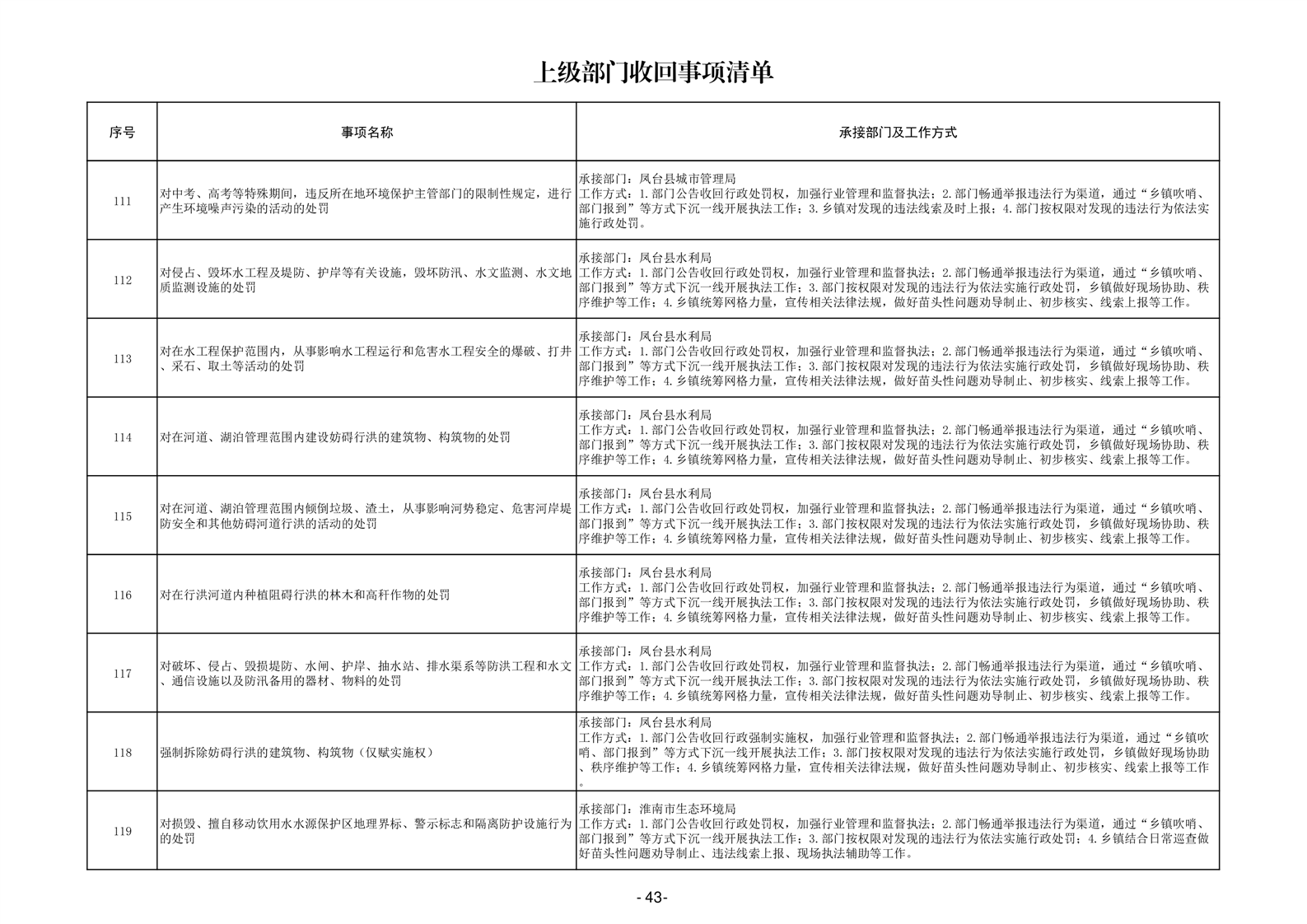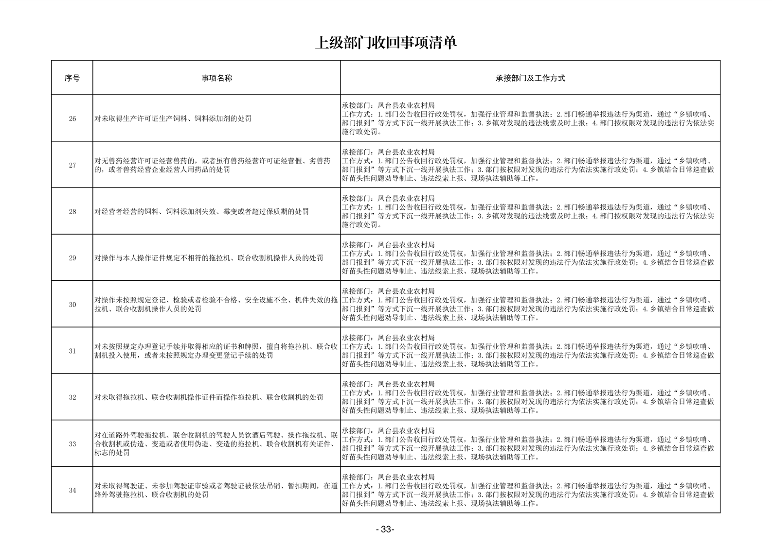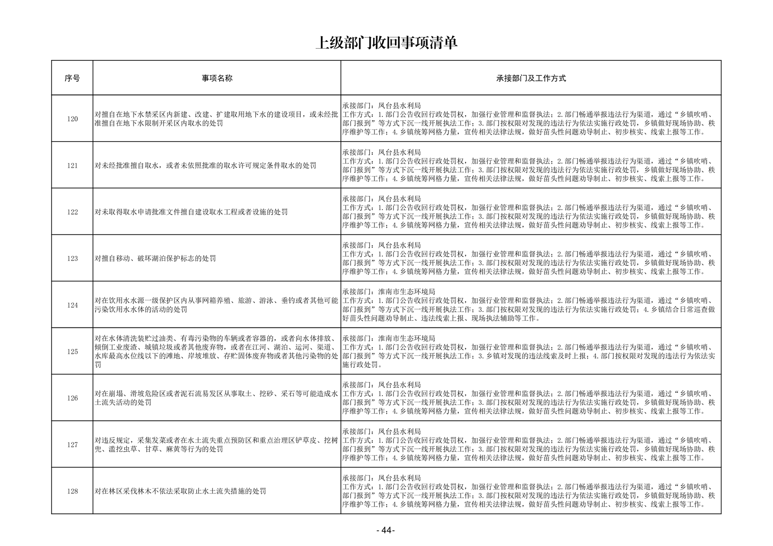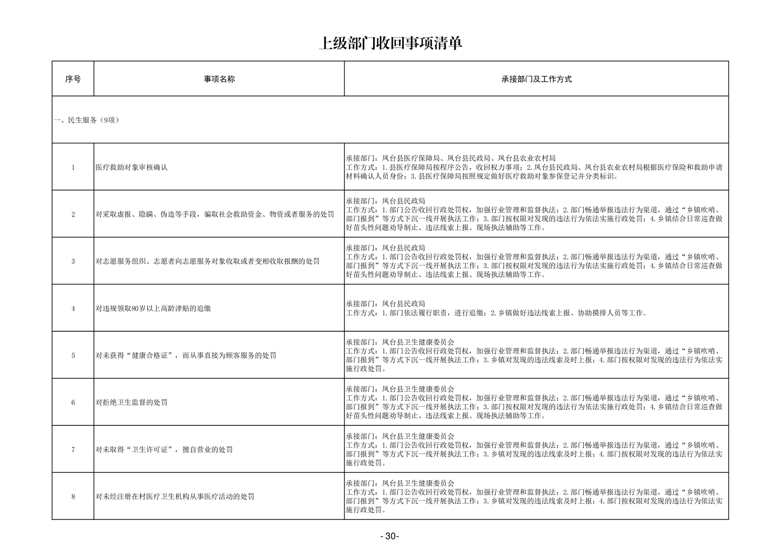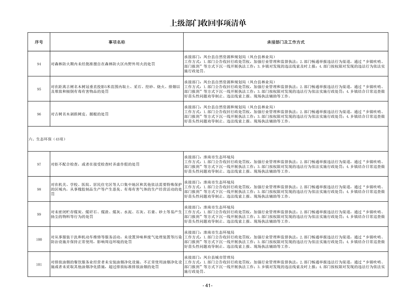 淮南市凤台县岳张集镇履职事项清单