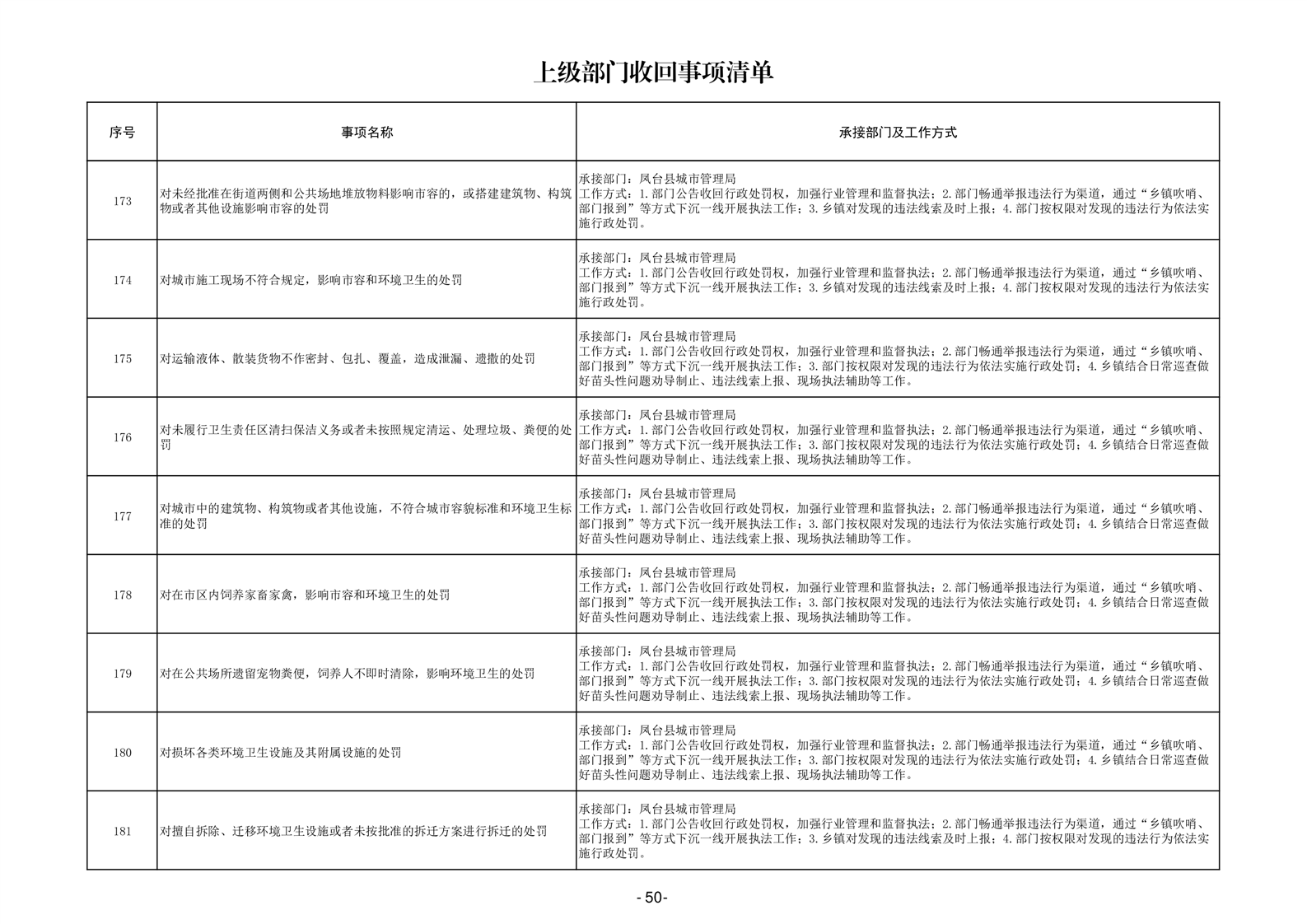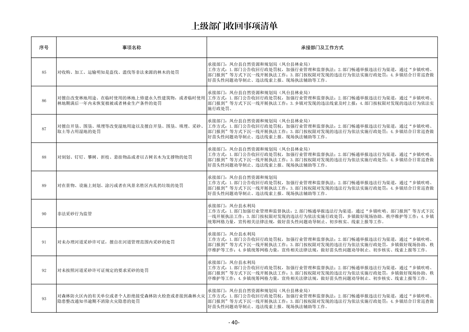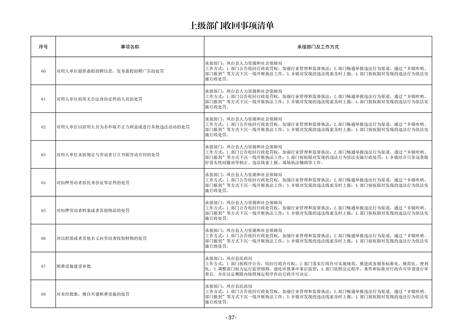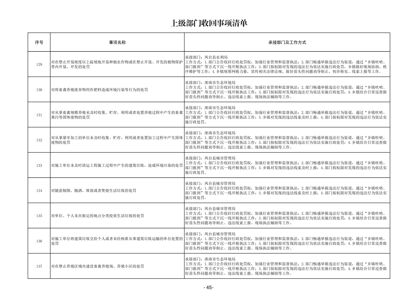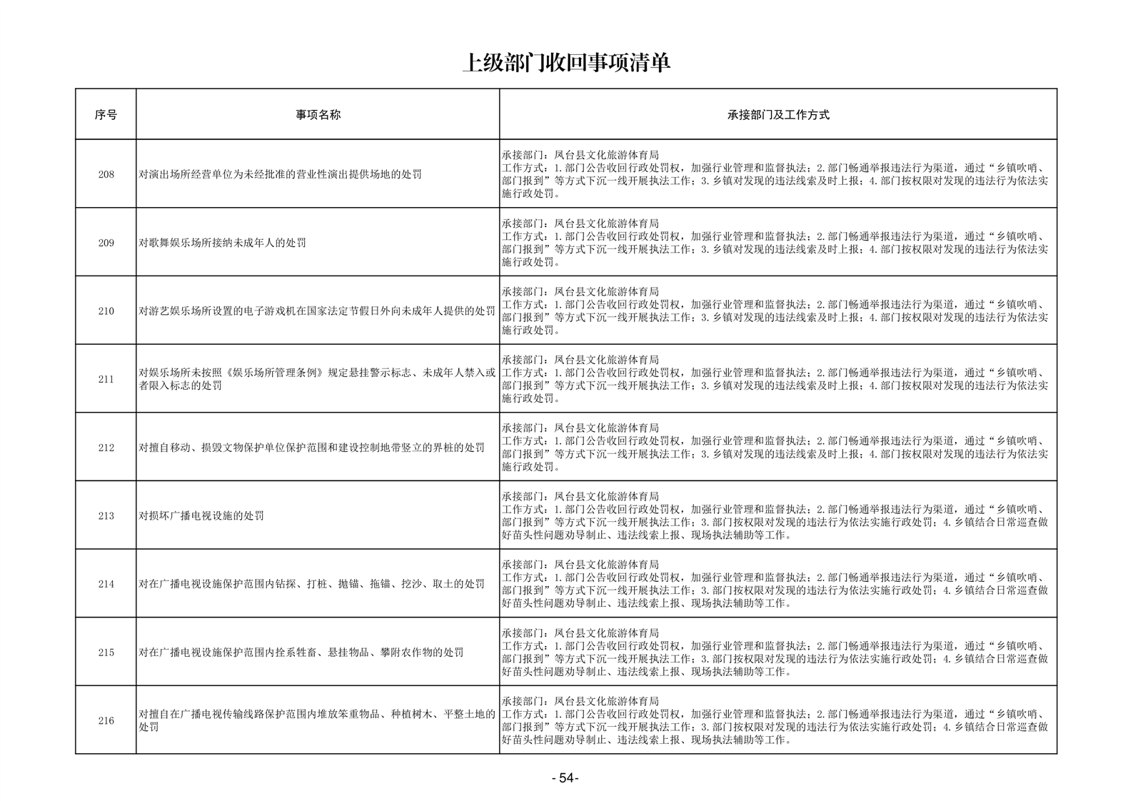 淮南市凤台县岳张集镇履职事项清单