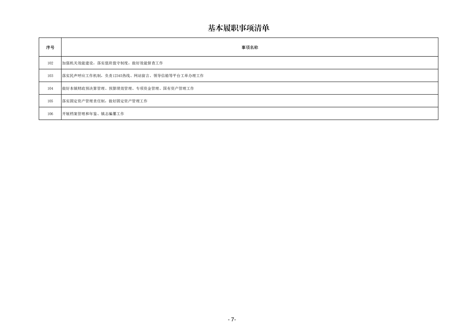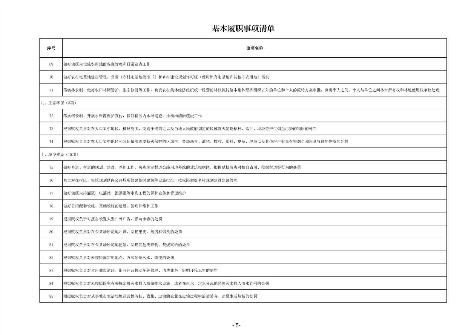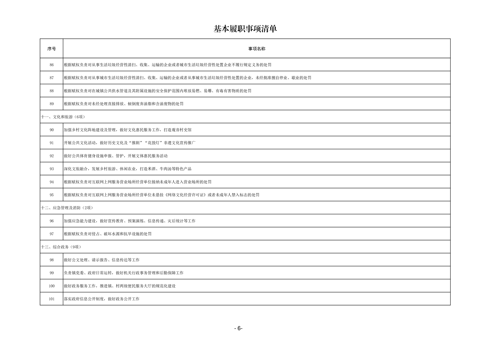 乡镇级政府权力清单和责任清单