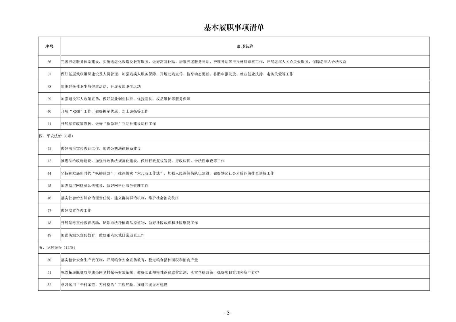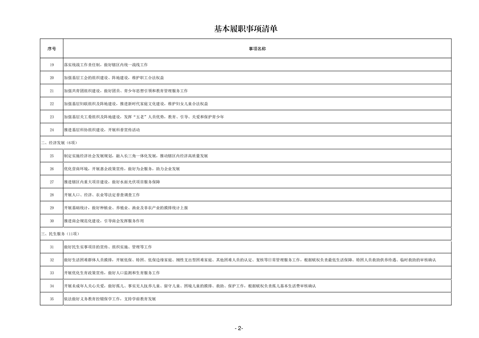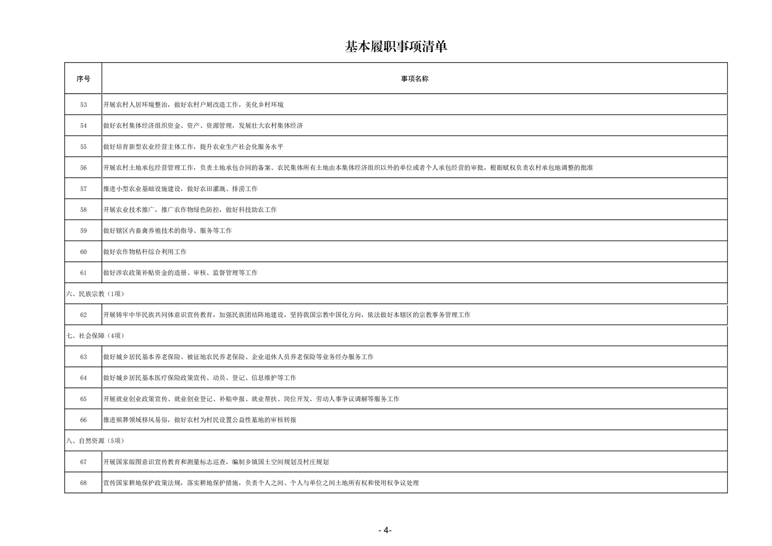乡镇级政府权力清单和责任清单
