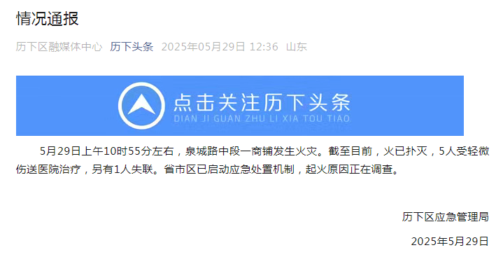 【事故安全类预警信息】商铺火灾,5伤1失联!节前紧急提醒!