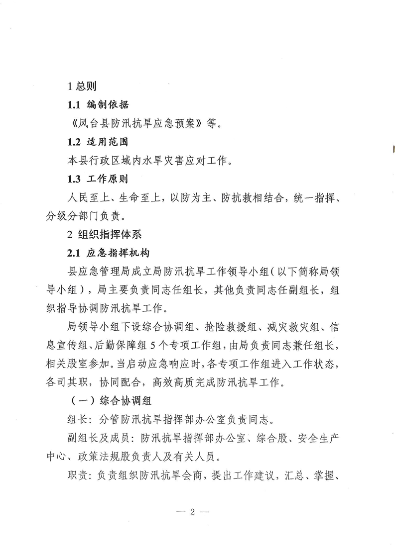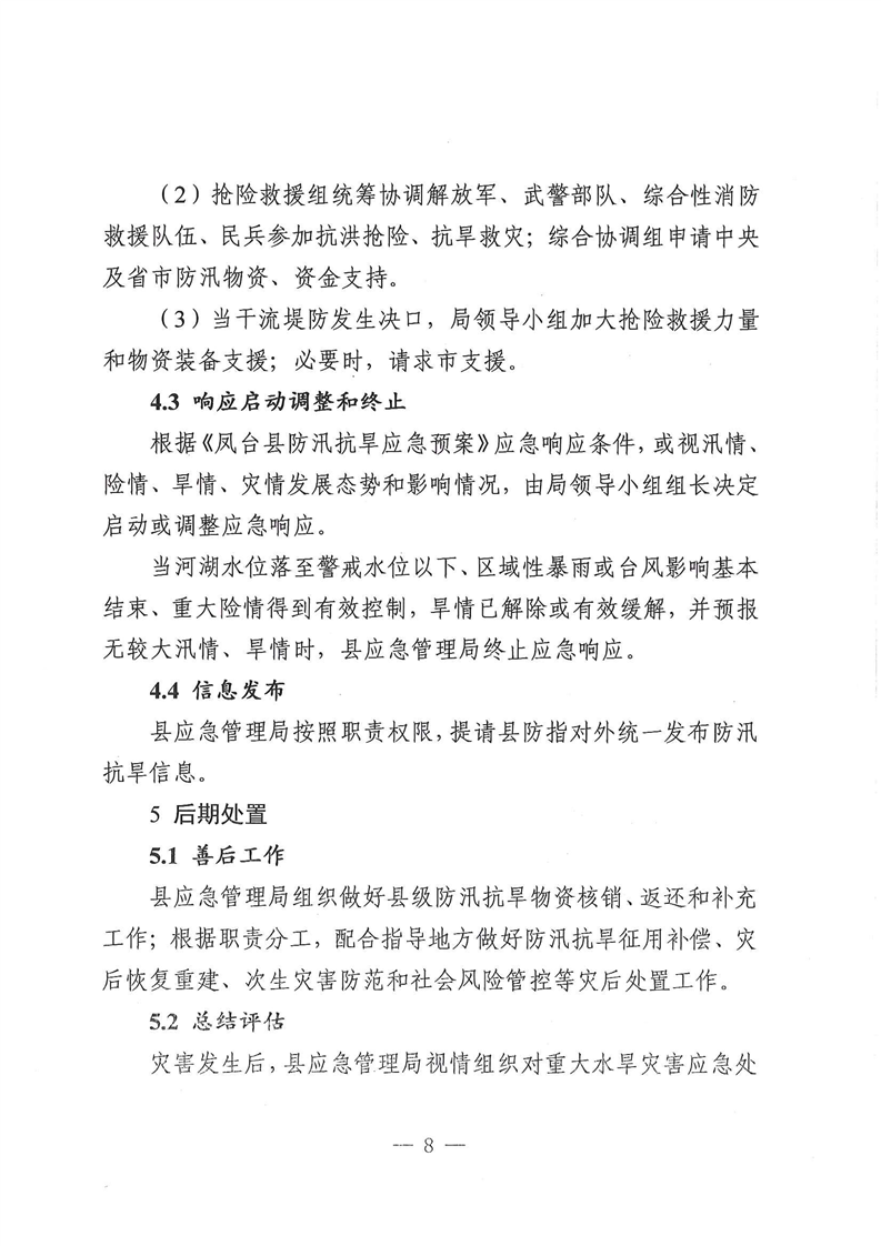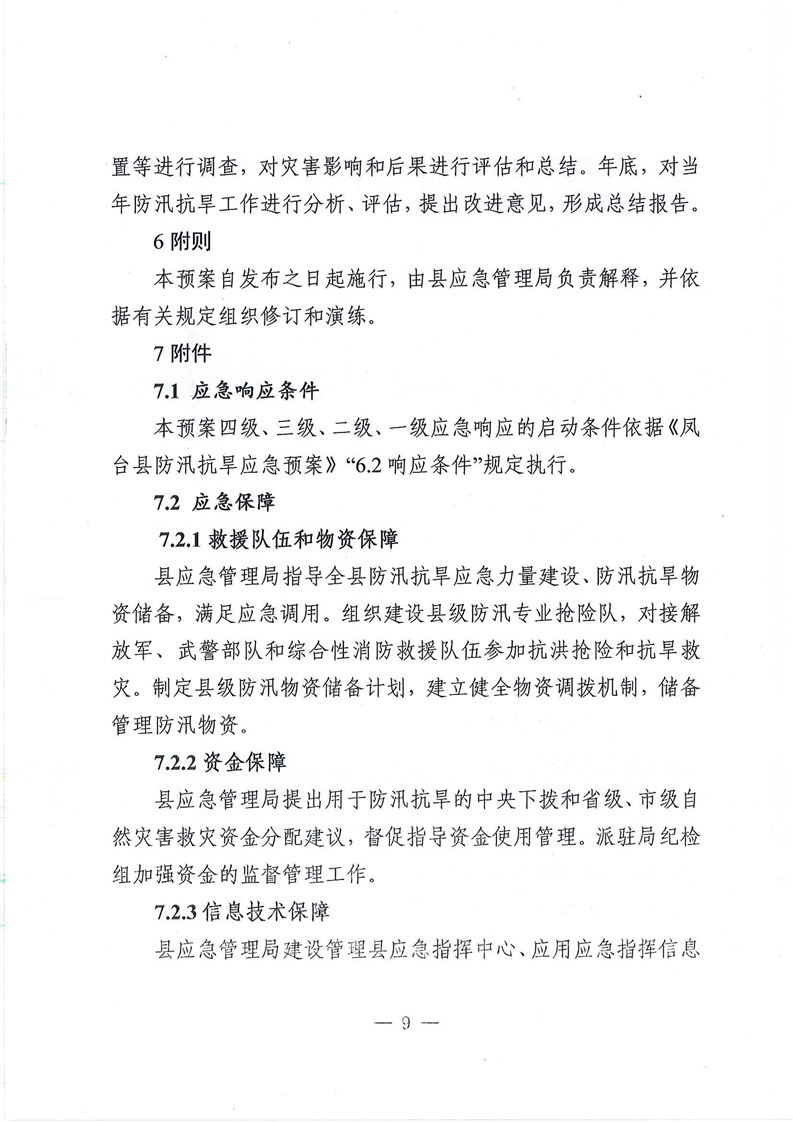 【自然灾害】凤台县应急管理局防汛抗旱应急预案