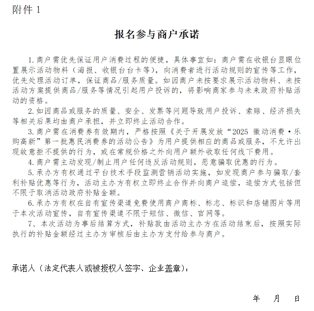 附件:1.报名参与商户承诺