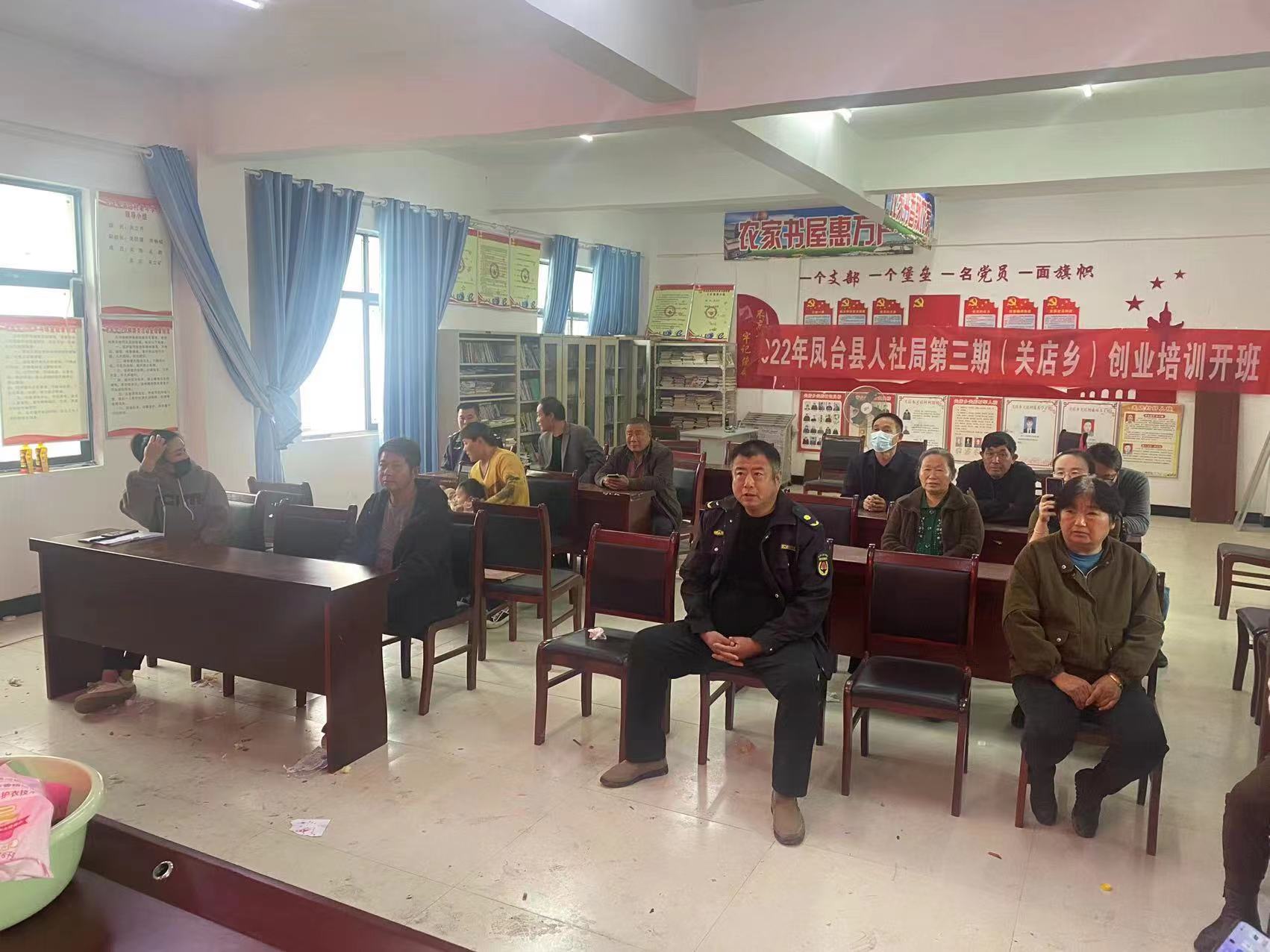 2022年9月21日,凤台县人社局第三期(关店乡)创业培训班在关店村举办,共计30人参加,为期10天,该课程由人社局李伟明讲授,主要对学员创业展开针对性的技能培训。