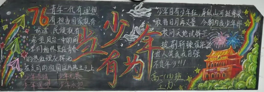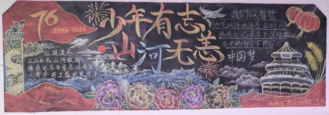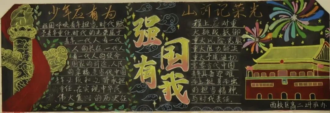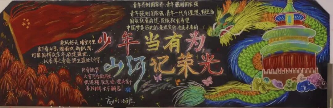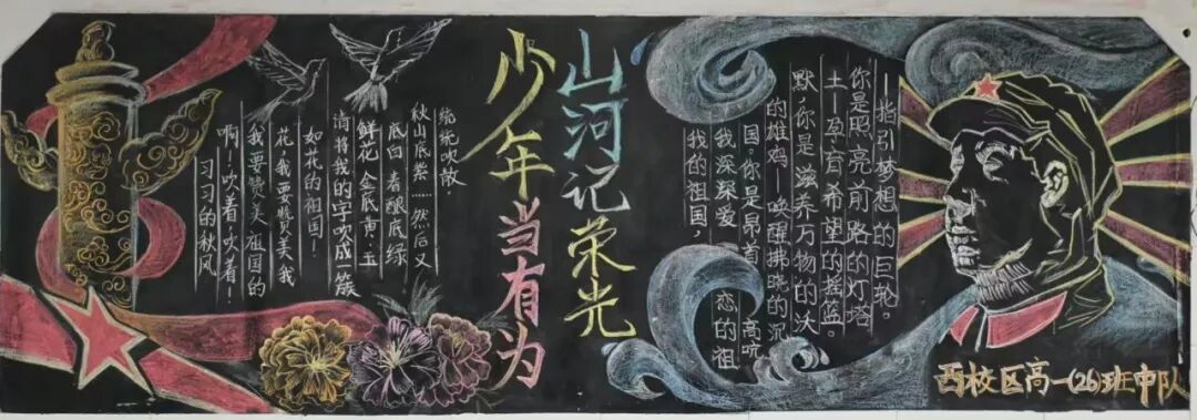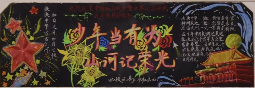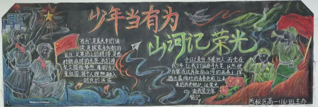 为深入学习贯彻习近平新时代中国特色社会主义思想,大力弘扬爱国主义精神,铭记9·3阅兵荣光,厚植家国情怀,近日,校团委组织开展以“少年当有为,山河记荣光”为主题的黑板报评比活动。