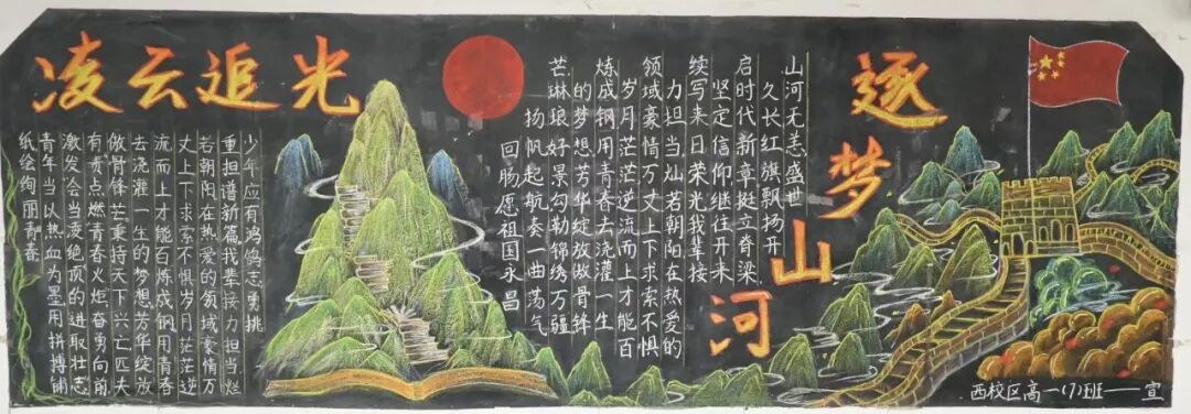 各班积极响应,精心创作。当粉笔画卷遇见红色基因,方寸黑板承载的不仅是艺术创意,更是时代青年的炽热初心。