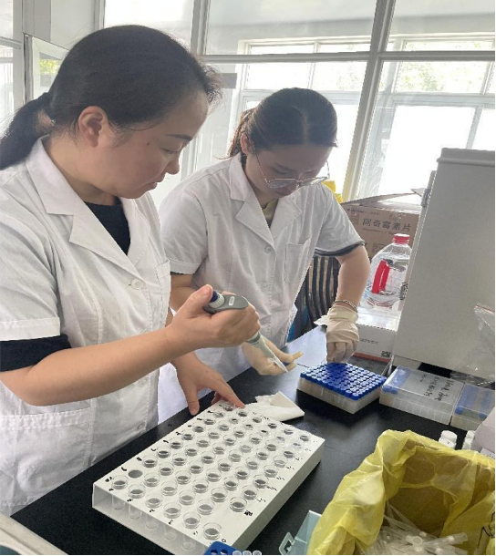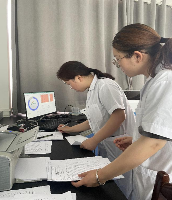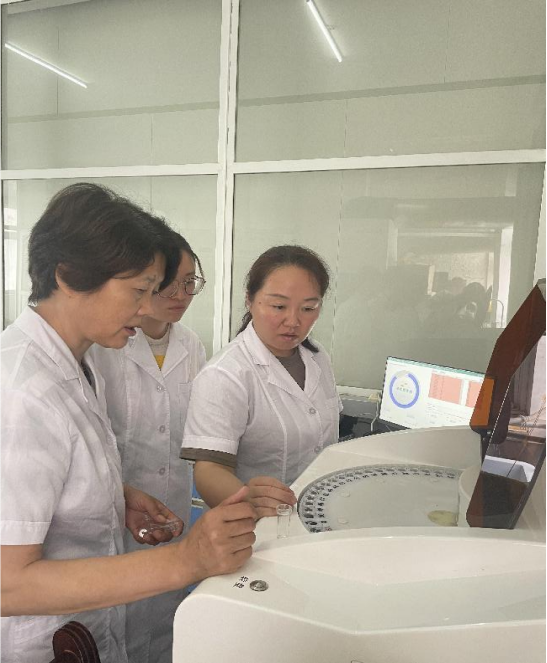 7月1日开始,检验科对采集来的460份尿液标本进行检测,其中包含学生样本200份、孕妇样本100份、高水碘地区样本160份。样本检测的每一个环节都需要实验人员的专业和耐心,由于样本量大、实验过程长,检验人员通常会加班加点的工作。对于检测结果超标的样本都会进行二次复核,做到对实验负责,对结果负责。