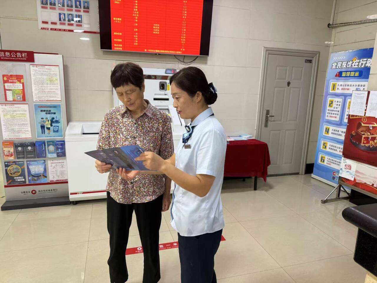 活动中,银行工作人员抓住群众等候办理业务的间隙,通过发放反诈宣传手册、现场讲解等方式,用通俗易懂的语言拆解诈骗分子的作案套路与迷惑手段,让群众清晰了解诈骗“陷阱”。
