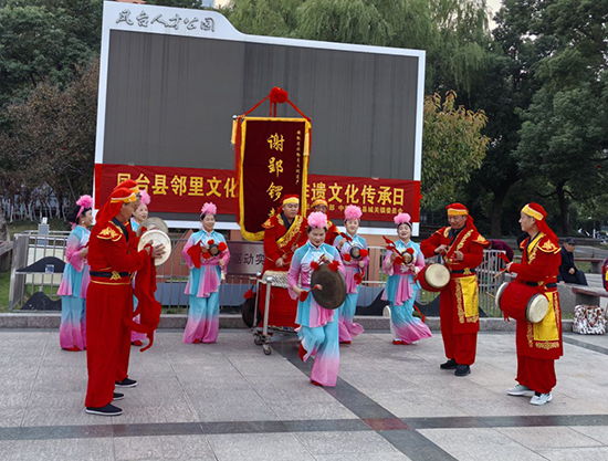 演出现场,省级非遗项目谢郢锣鼓、淮河大鼓精彩节目依次上演。谢郢锣鼓队铿锵有力、抑扬顿挫的演奏,淮河大鼓表演者粗犷豪放的唱腔、韵味十足的表演,赢得了阵阵掌声,为群众带来一场精彩的“文化盛宴”。