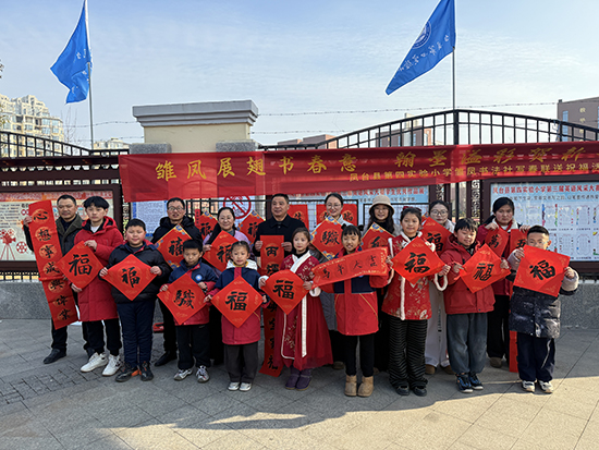 2月3日,凤台县第四实验小学雏凤书法社开展写春联送祝福活动。