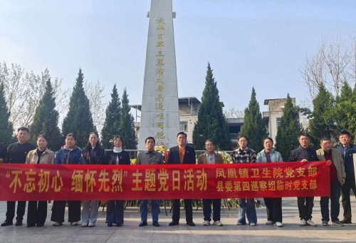 4月1日,县委第四巡察组临时党支部、凤凰镇卫生院党支部组织部分党员,前往凤台县三里沟抗日纪念园联合开展清明祭扫主题党日活动。