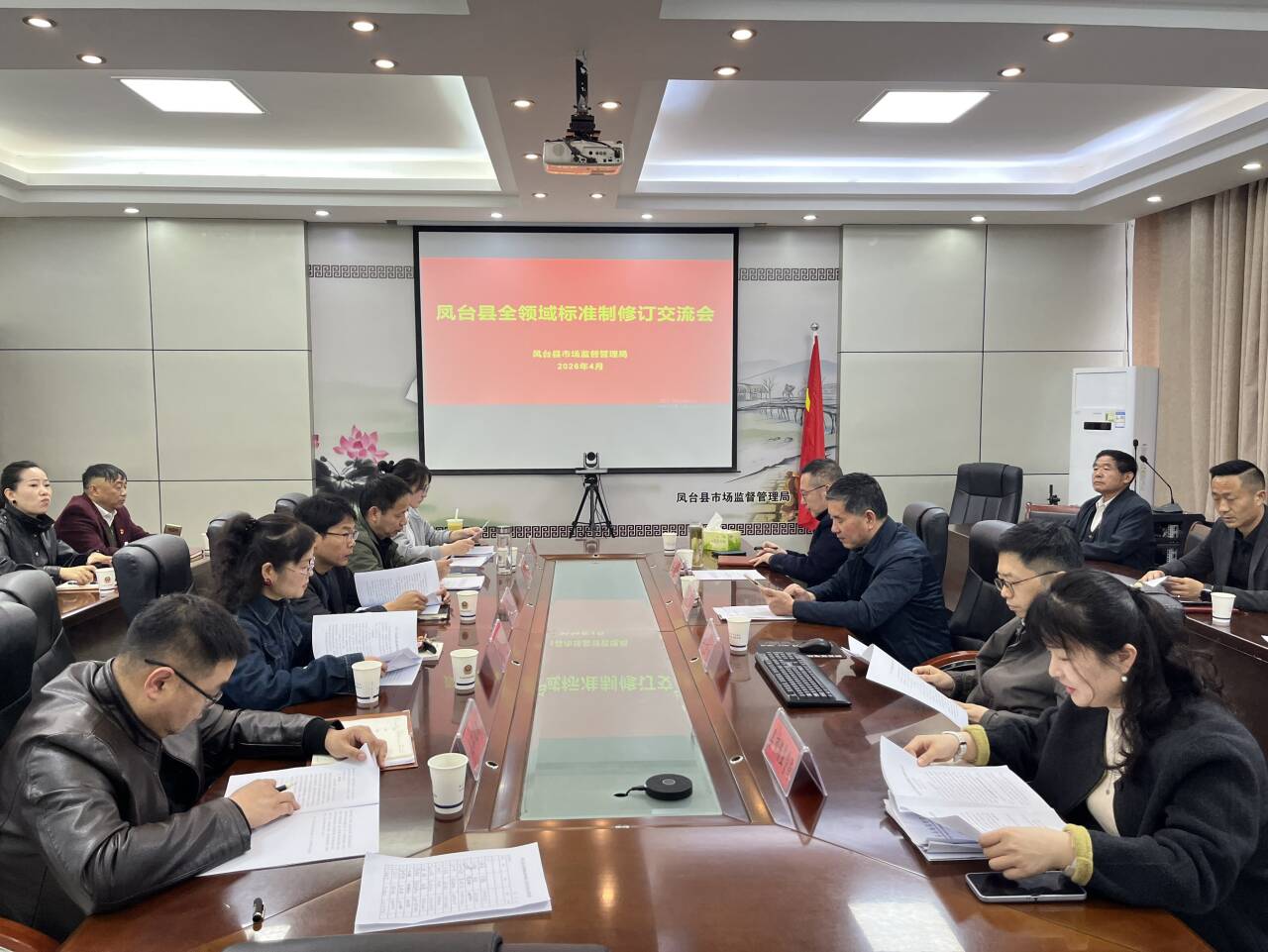 4月9日,凤台县全领域标准制修订交流会在县市场监督管理局会议室召开。市县相关单位、重点企业代表等参加会议。