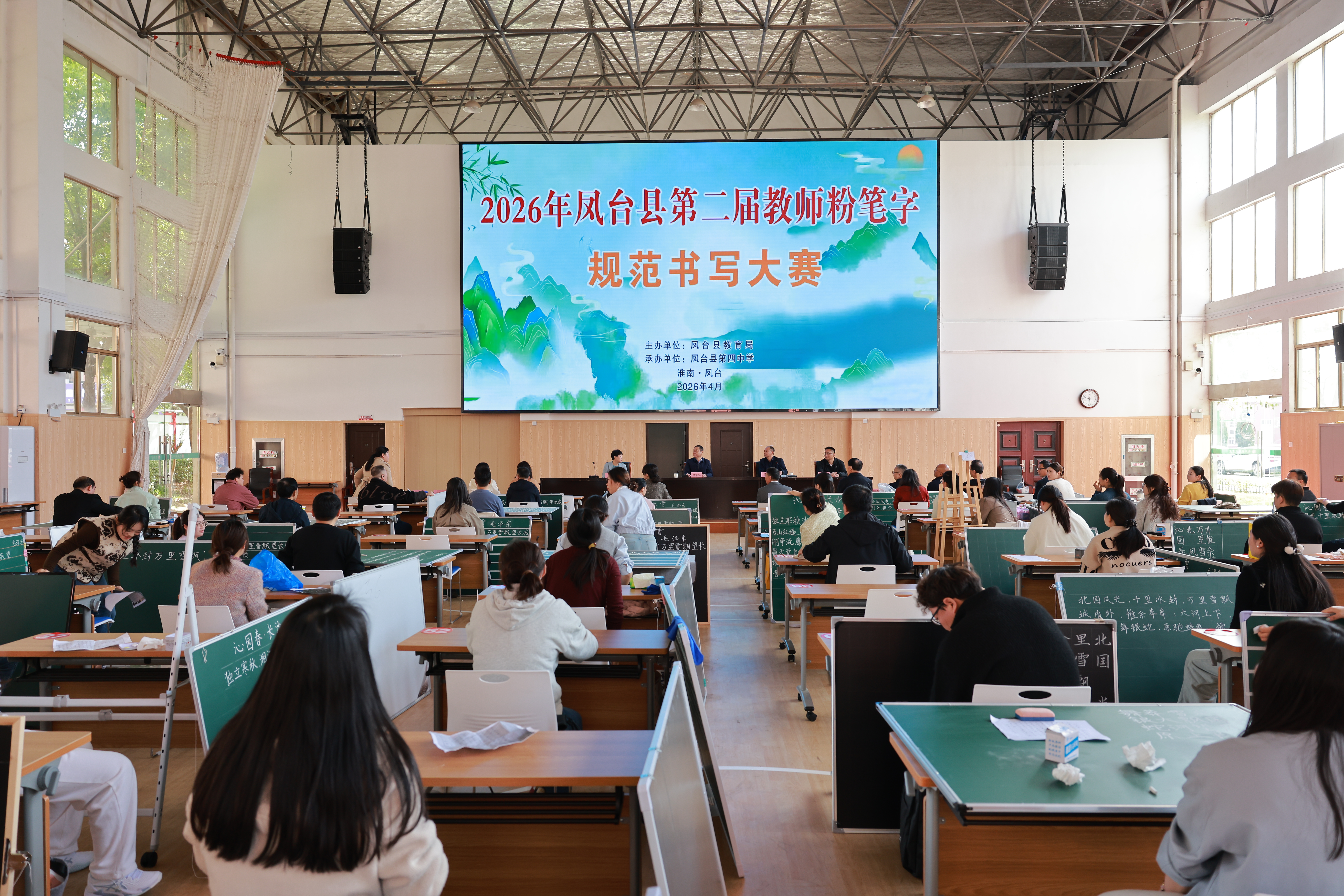 笔墨传情,板书育人。4月24日,凤台县第二届教师粉笔字规范书写大赛在县第四中学举行。来自全县各学校的116名教师参加比赛。