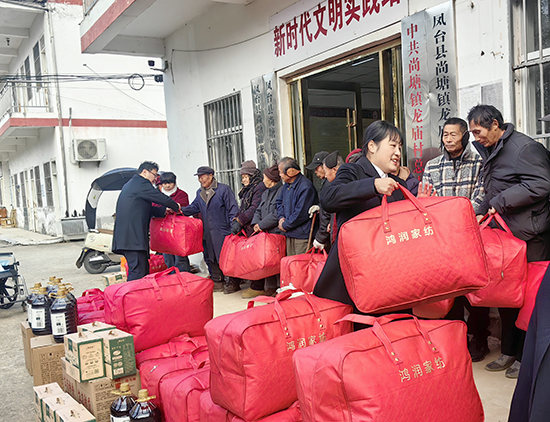 1月6日,中国工商银行凤台支行组织淮南市芝英慈善基金会、安徽嘉玺新材料科技有限公司等企业,带着价值2万余元的棉被、大米、食用油、牛奶等生活物资,前往尚塘镇龙庙村开展情暖万家走访慰问活动。尚塘镇负责人陪同。