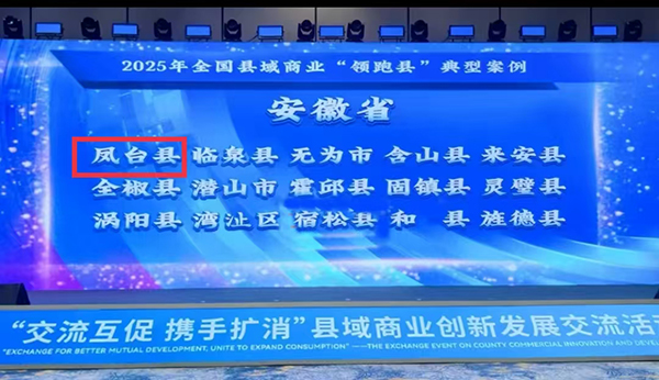 近日,商务部公布了2025年全国县域商业“领跑县”典型案例名单。其中,凤台县入选。