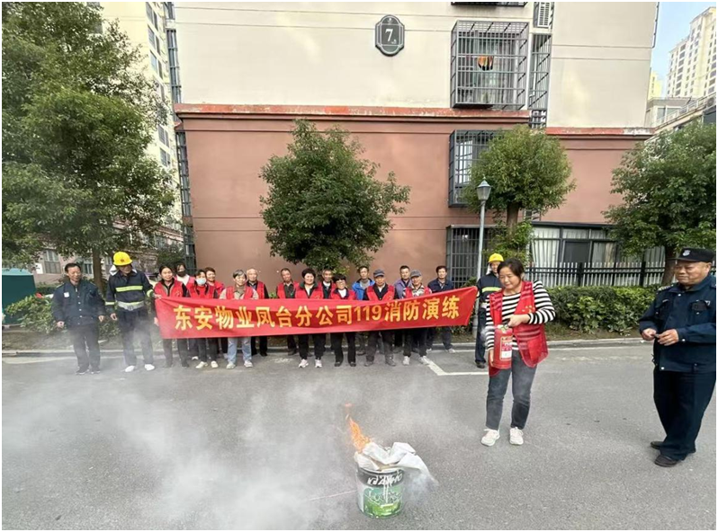 演练以“高层住宅突发火情”为模拟场景,按照“预警—处置—救援—疏散”流程展开。物业监控中心触发应急响应,消防控制室报警并联系救援站,物业管家引导居民疏散。演练结束后,消防救援站工作人员对物业员工进行实操培训。