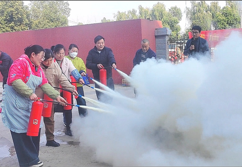 在演练活动中,乡分管安全工作负责人详细讲解了火灾的预防、扑救、逃生等基本知识和技能,并通过现场演示的方式,让广大企业职工深刻认识到消防安全工作“防患于未然”的重要性和紧迫性。在实操演练环节,重点模拟了火灾场景,随着“火情警报”响起,乡消防安全员迅速进入应急状态,指导职工严格按照“捂口鼻、弯腰低姿、靠右前行”的逃生规范,沿安全通道快速有序撤离至指定安全区域。随后,消防车、园区企业消防管道开启向楼房指定部位喷水,整个灭火实操按预练方案有序进行,达到了预期的演练效果。消防员还现场演示了手提式干粉灭火器的操作流程。在消防人员手把手指导下,部分职工代表切实掌握了“提、拔、握、压”等灭火器操作要领和初期火情处置技巧,顺利完成了火灾扑救模拟演练,成功扑灭了模拟火源。