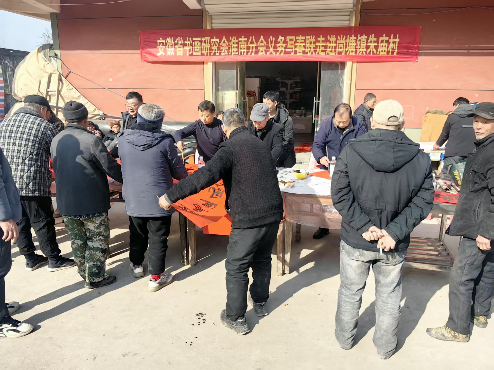 2月4号,部分省市书法协会会员前往即将开建的凤台县尚塘镇朱庙村红旗联队和美乡村示范点,义务为村民书写春联。