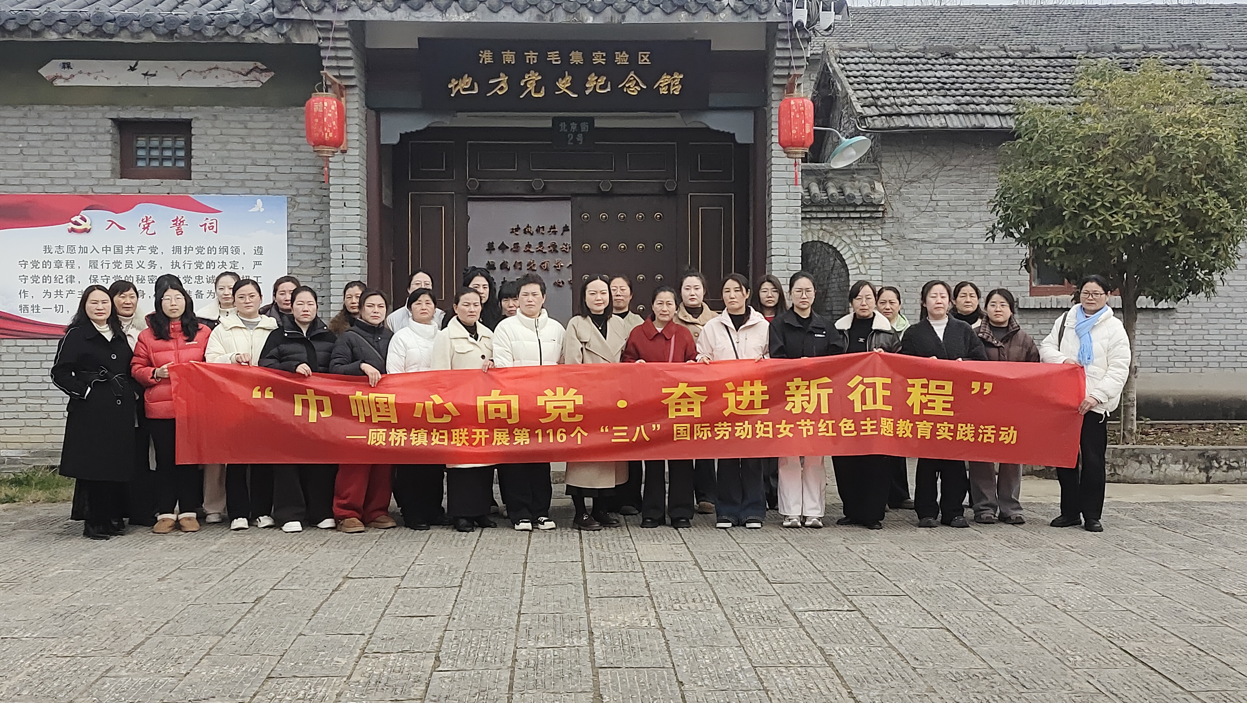 3月6日,顾桥镇妇联组织镇村妇联主席,好媳妇好婆婆、巾帼志愿者代表以及镇女职工等,开展“巾帼心向党•奋进新征程”主题活动,通过沉浸式红色教育的形式,庆祝第116个“三八”妇女节。
