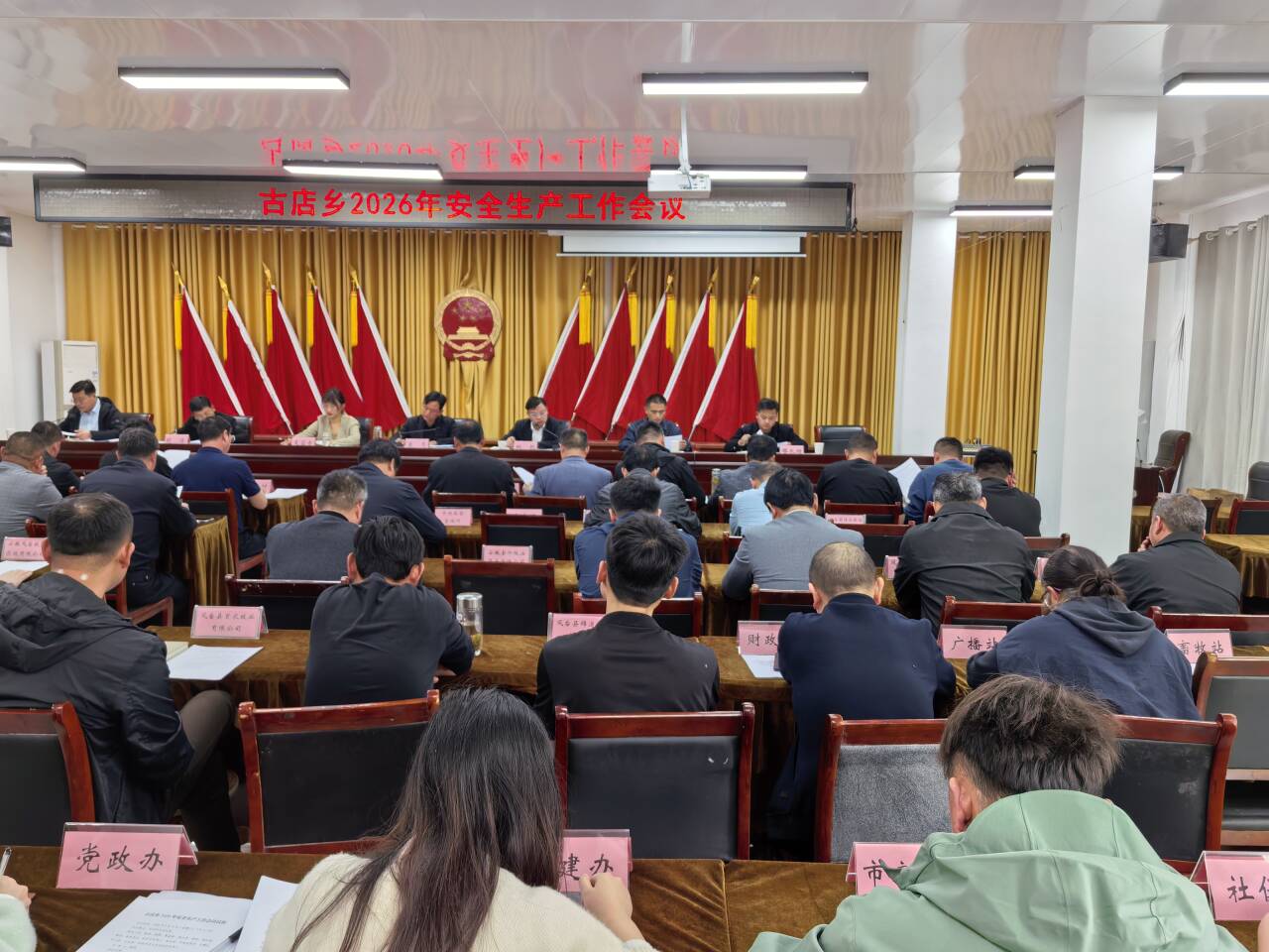 4月15日,古店乡2026年安全生产工作会议召开。该乡领导班子成员,各村书记及各站、所、学校、企业负责人等参加会议。