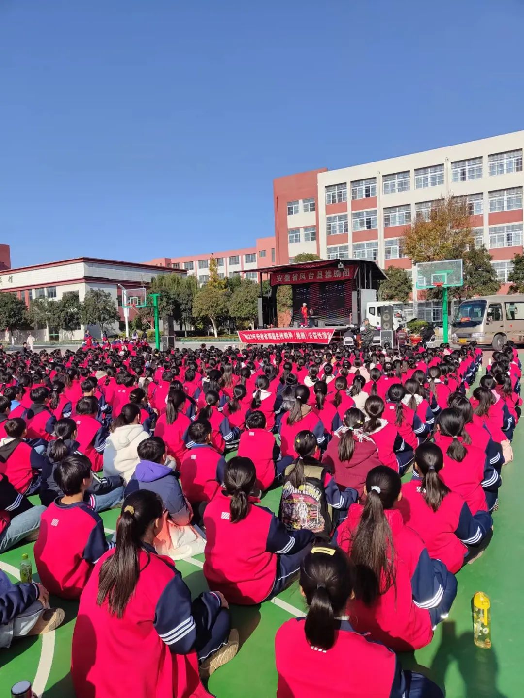 为了进一步落实“五育并举”,弘扬传统文化,训练期间七年级组织学生观看了凤台县推剧团戏曲演出,近距离感受传统戏曲别具一格的魅力。精彩的戏曲演出赢得学生阵阵掌声,激发了同学们对优秀传统文化的热爱,进一步提高了同学们对文化自信的理解。