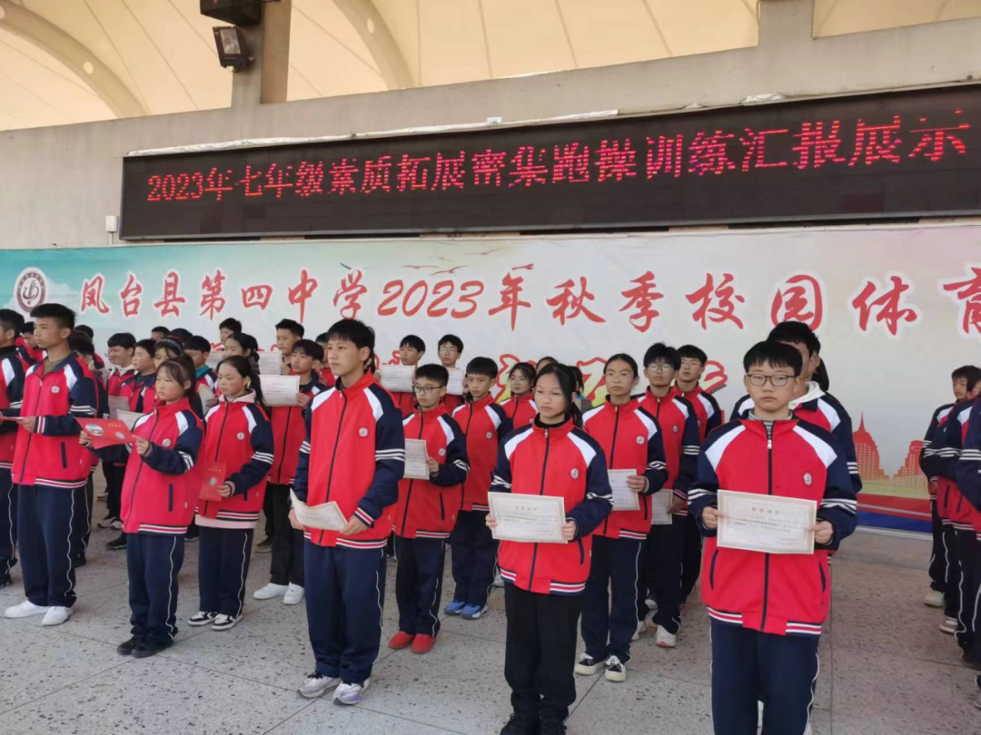 繁忙而充实的素质拓展密集跑操训练圆满结束。年级领导为获奖队员和班级颁发了奖状,徐玉苗校助做了总结发言,他对学生们在训练中的表现给予了充分肯定,并强调素质拓展密集跑操训练是“双减”背景下我们学校特色研学课程,有利于学生们健康成长,不仅锻炼学生的身体,更增强了学生的团队合作精神和不惧困难的坚强意志。